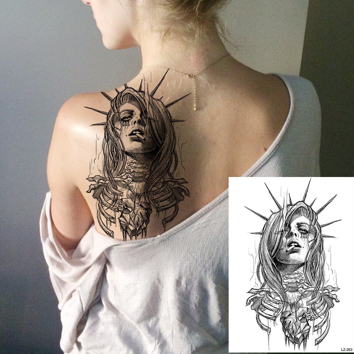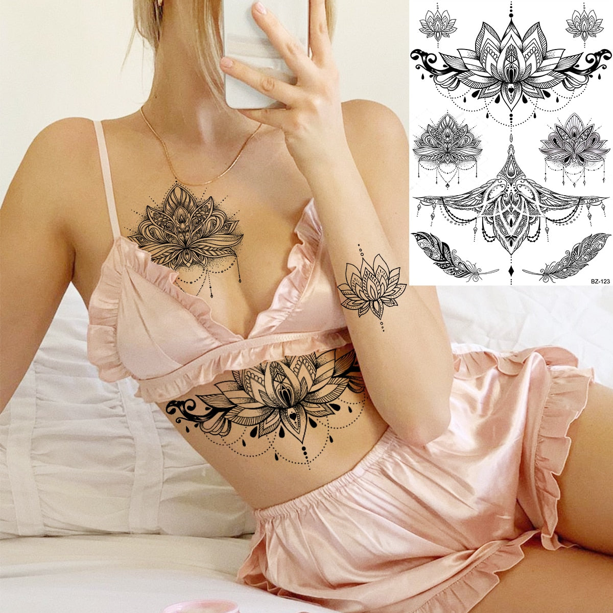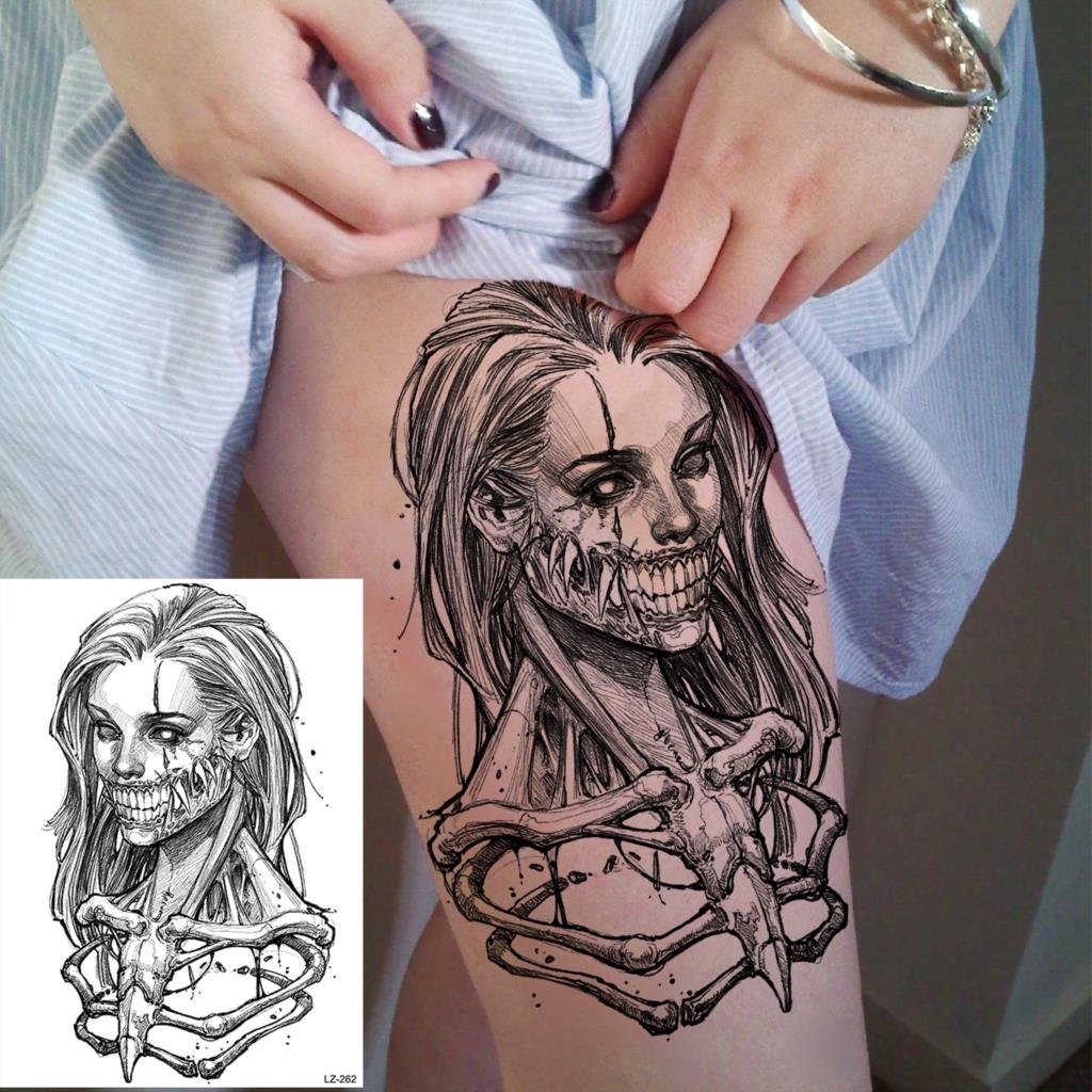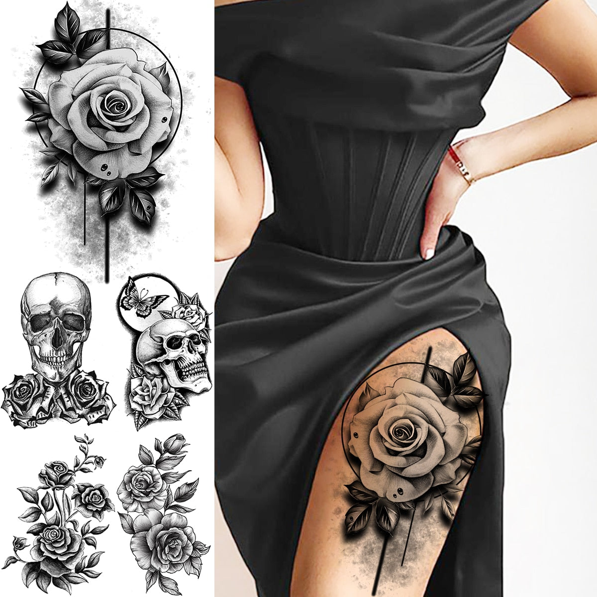 Black Rose Flower Sexy Temporary Tattoos For Women Adult Thigh Peony Skull Realistic Fake Tattoo Sexy Washable Tatoos Sticker