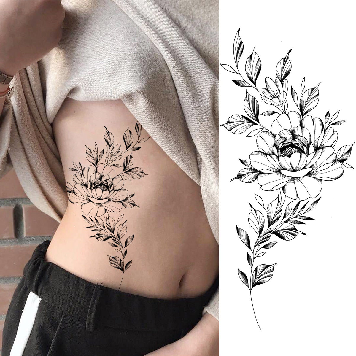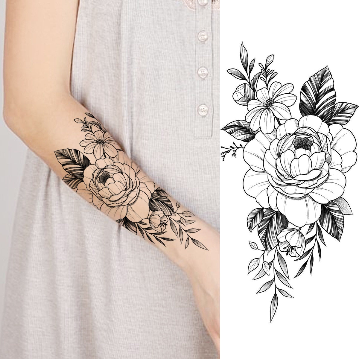 Black Rose Flower Snake Temporary Tattoos For Women Adult Peony Serpent Fake Tattoo Forearm Body Art Painting Waterproof Tatoos