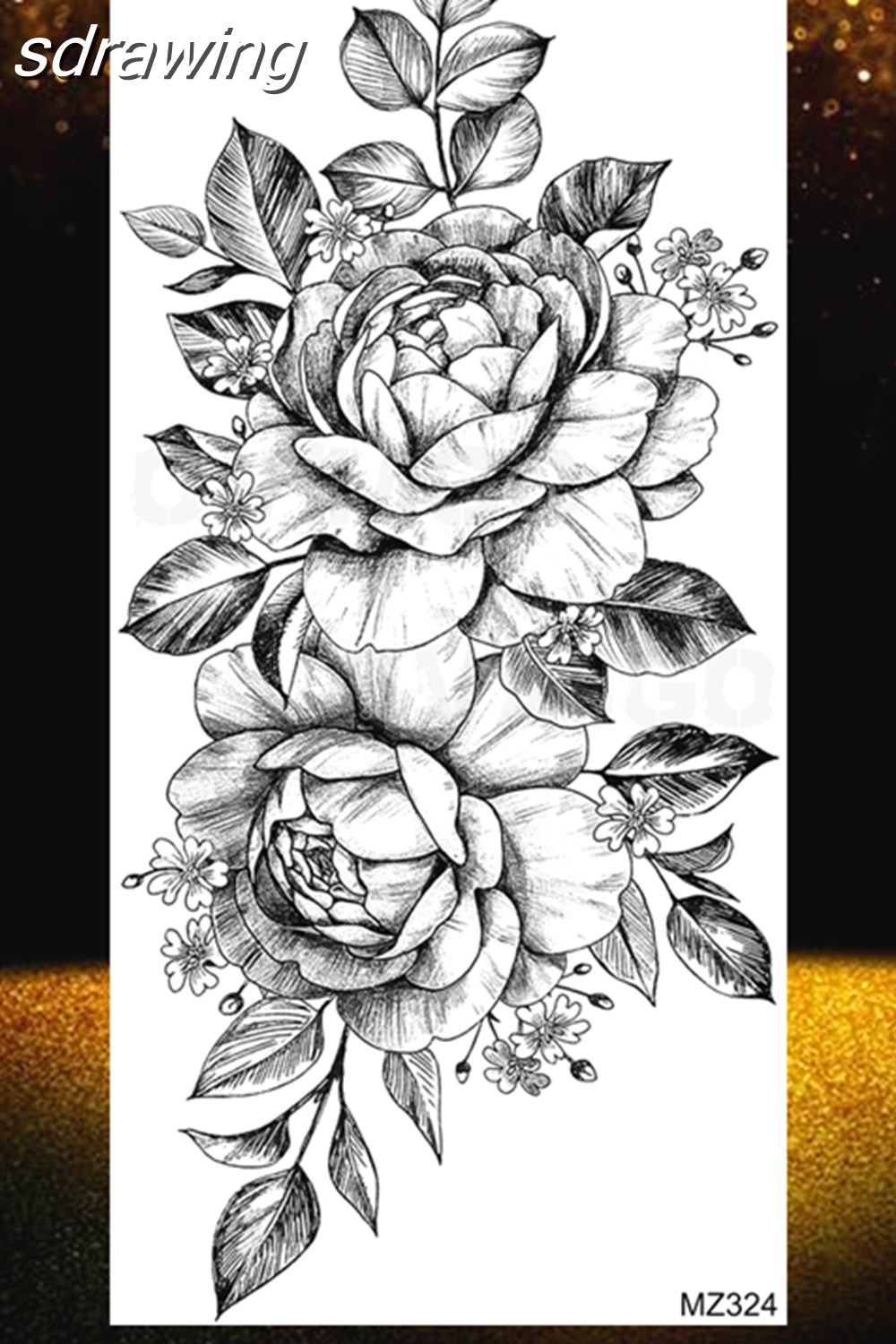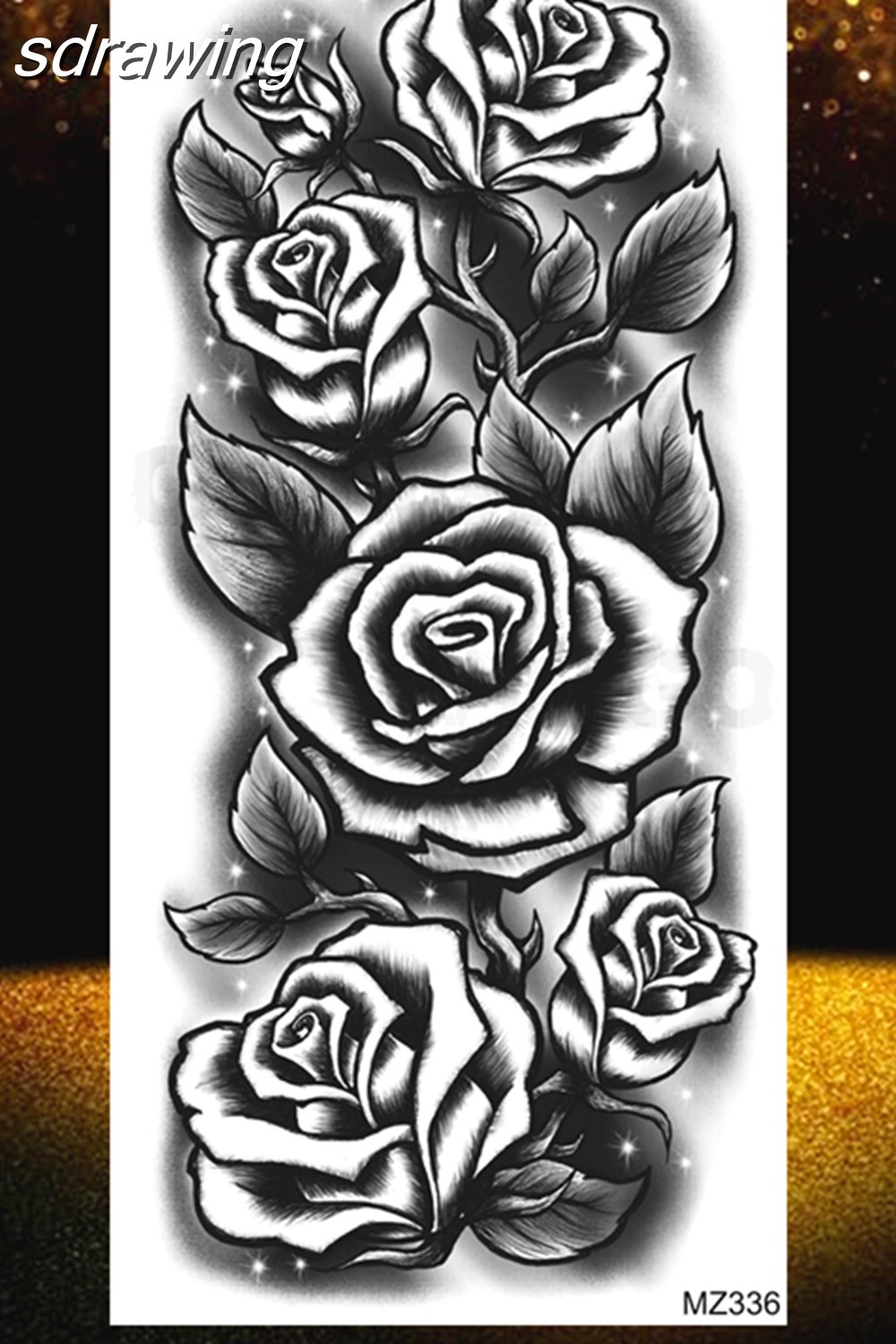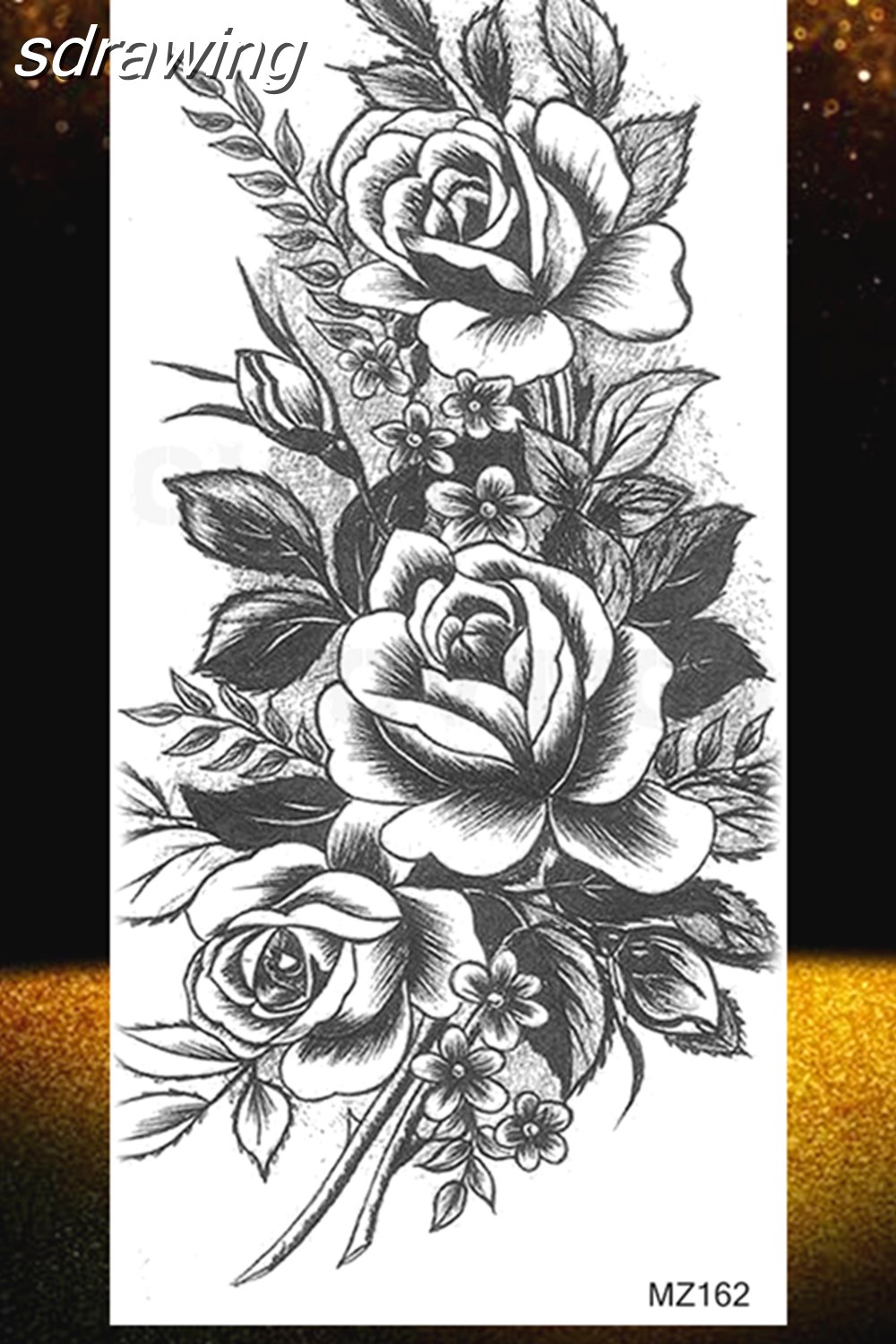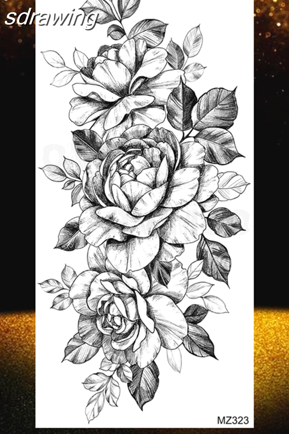 Black Rose Flower Temporary Tattoos Fake Waterproof Tatoo Body Art Arm Leg Floral Peony Bloosom Tattoo Stickers Makeup 928-0