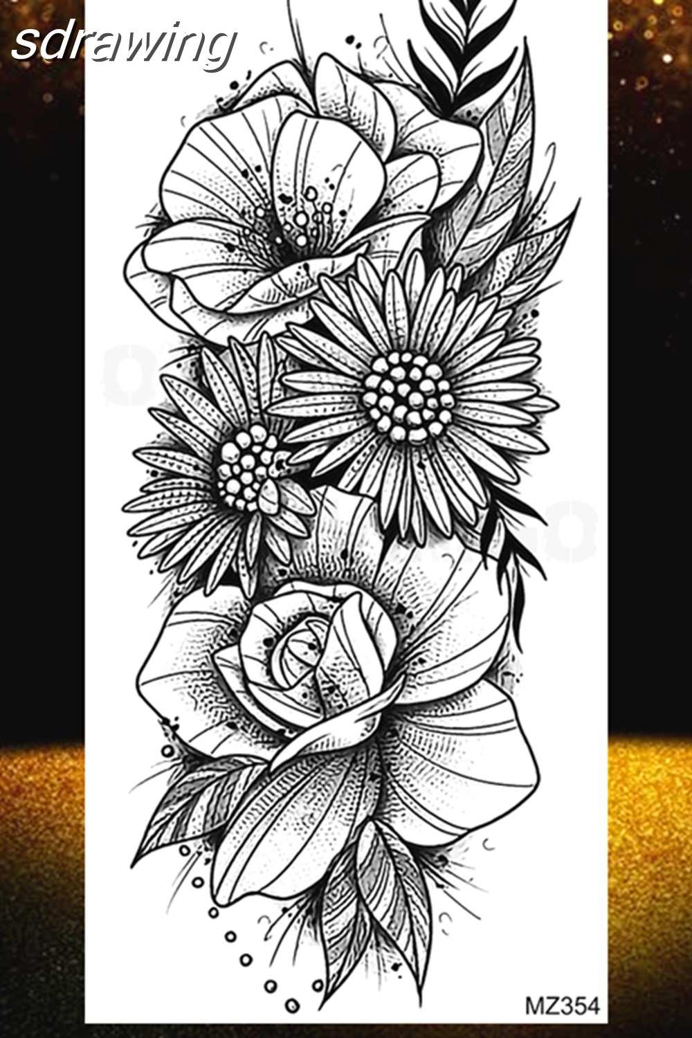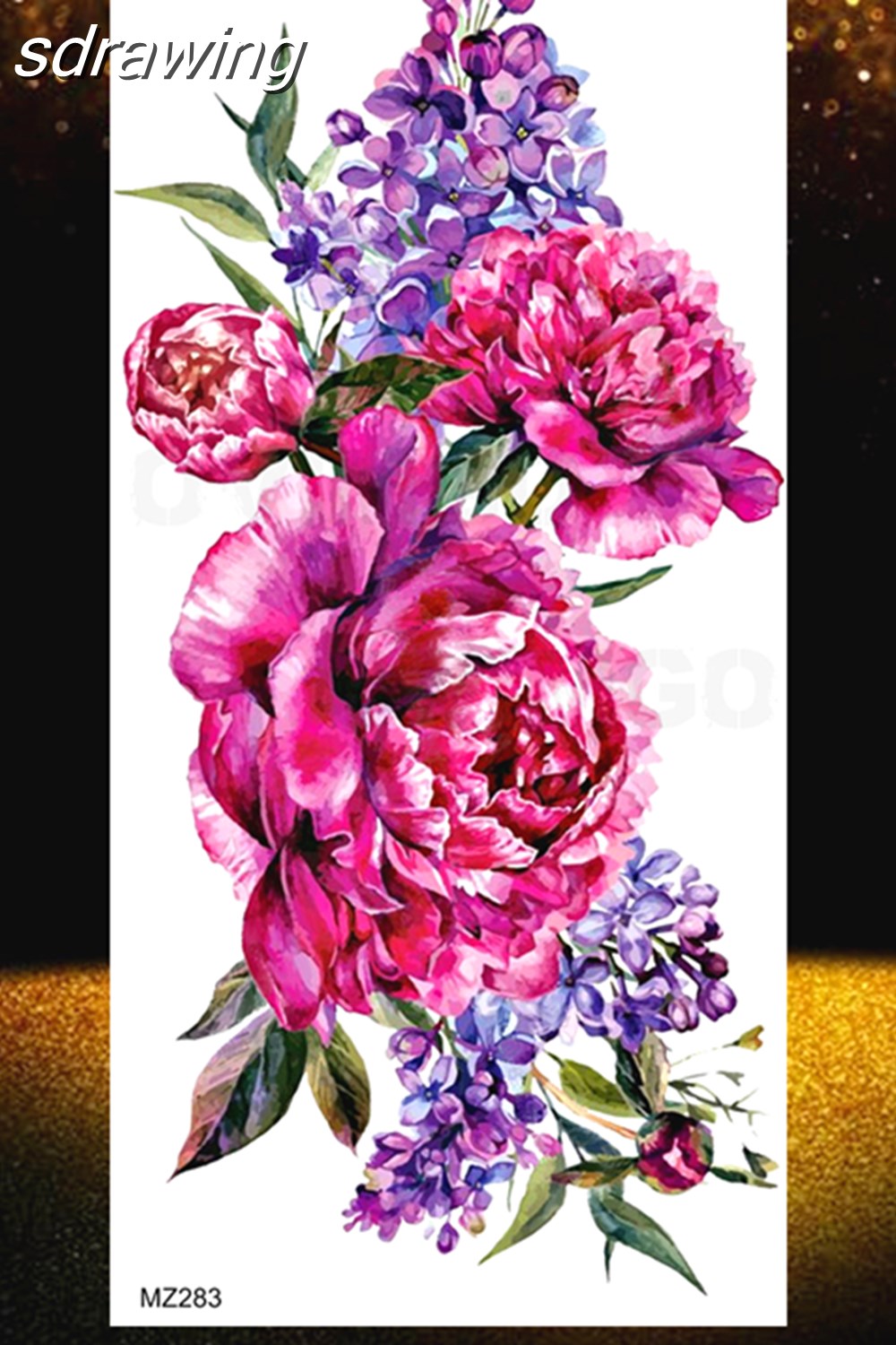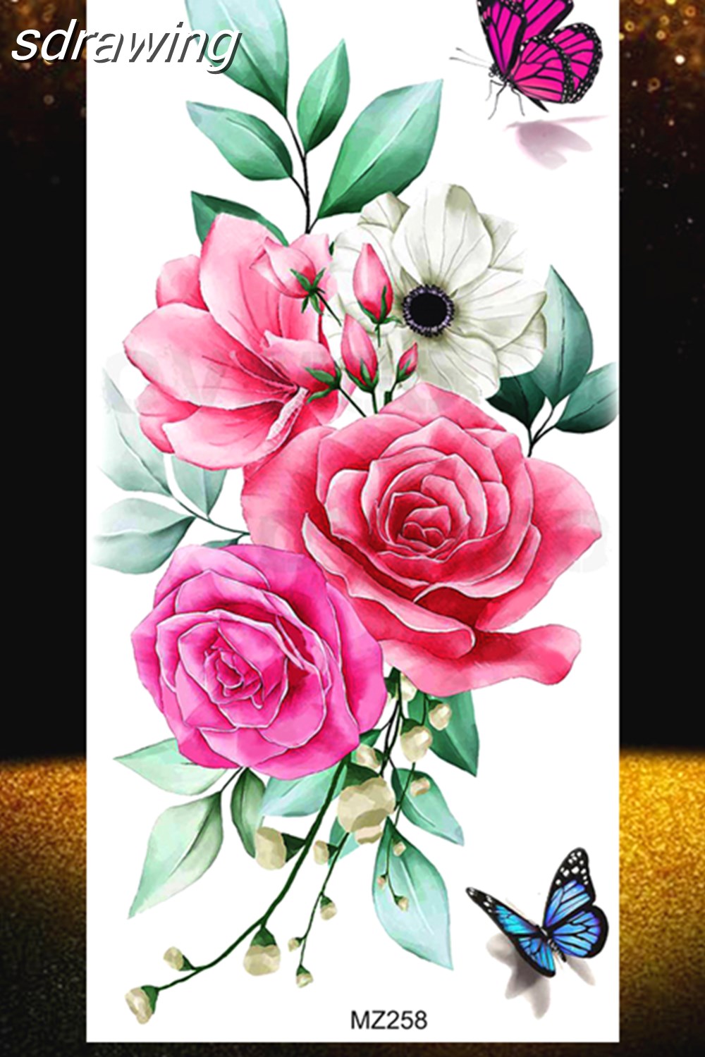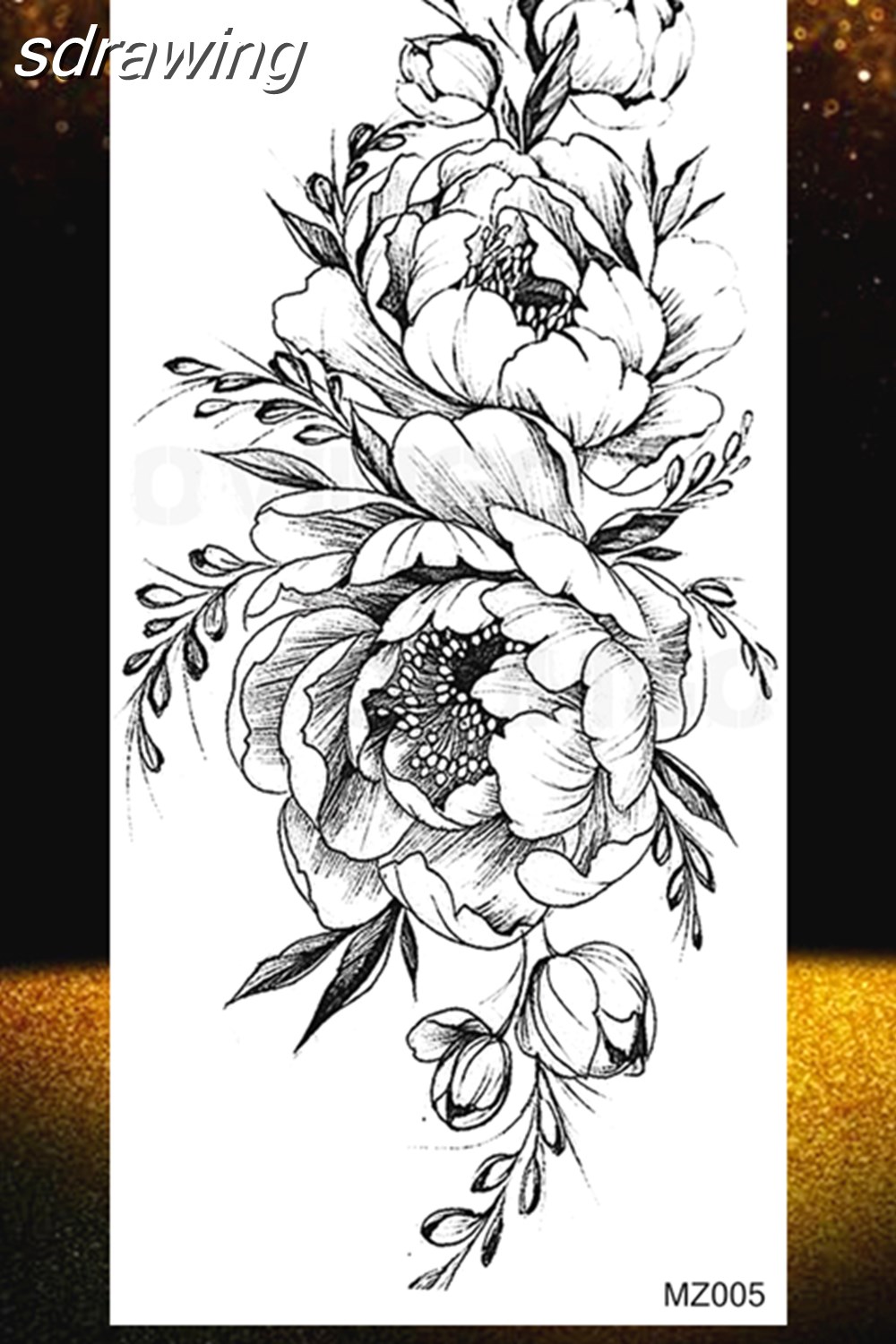 Black Rose Flower Temporary Tattoos Fake Waterproof Tatoo Body Art Arm Leg Floral Peony Bloosom Tattoo Stickers Makeup 928-0