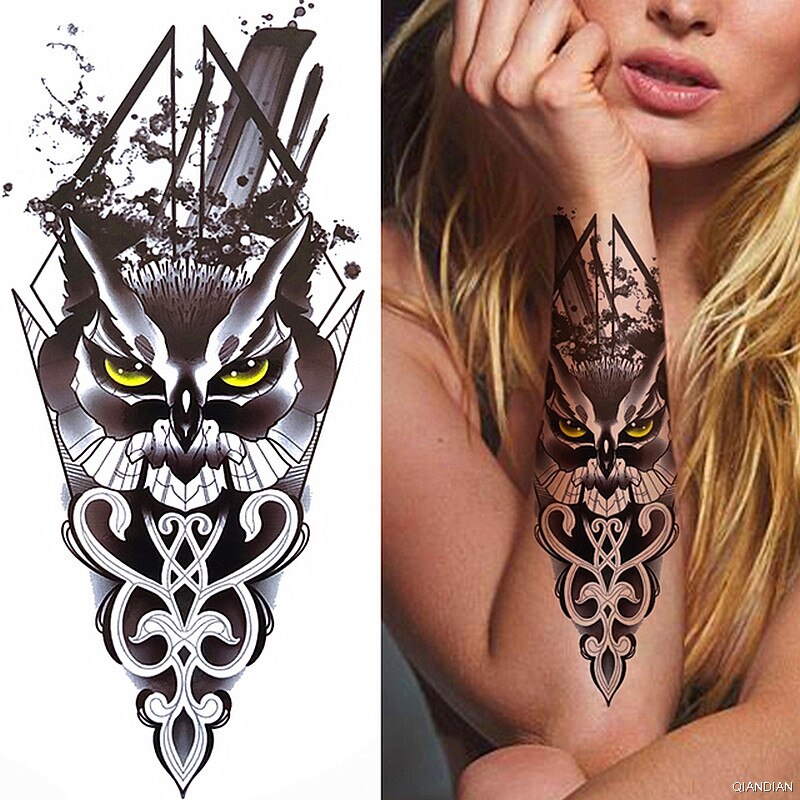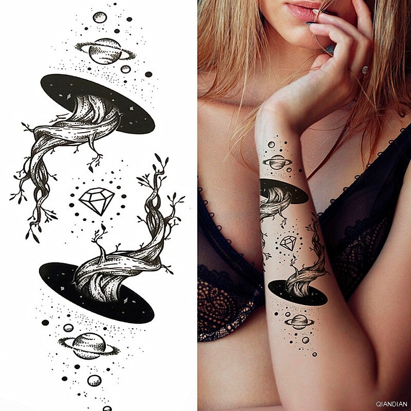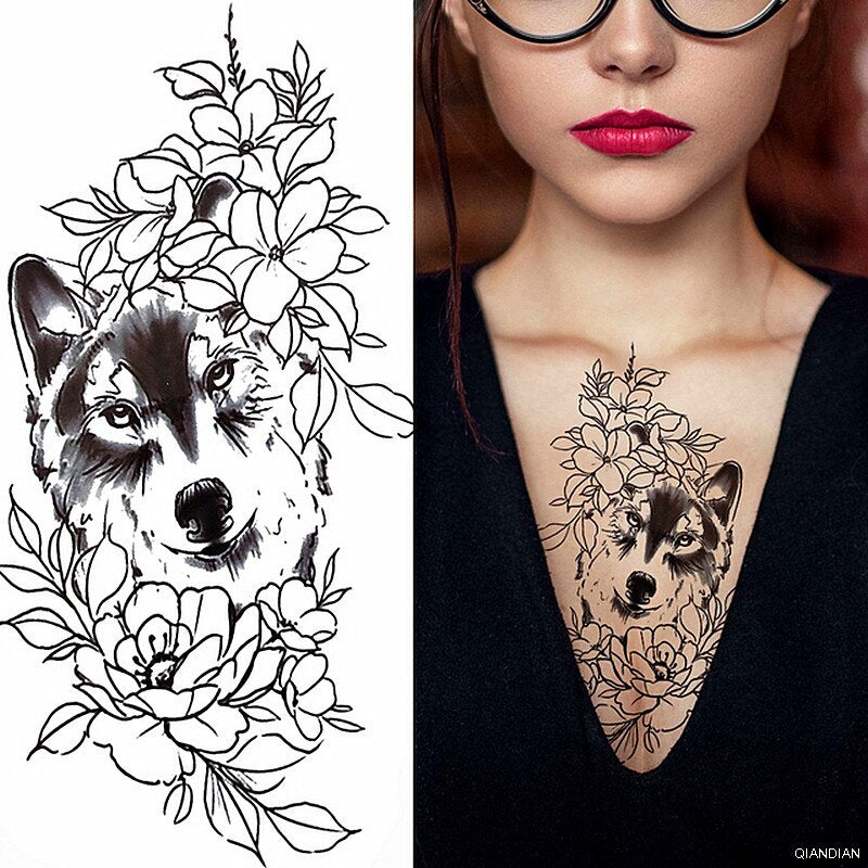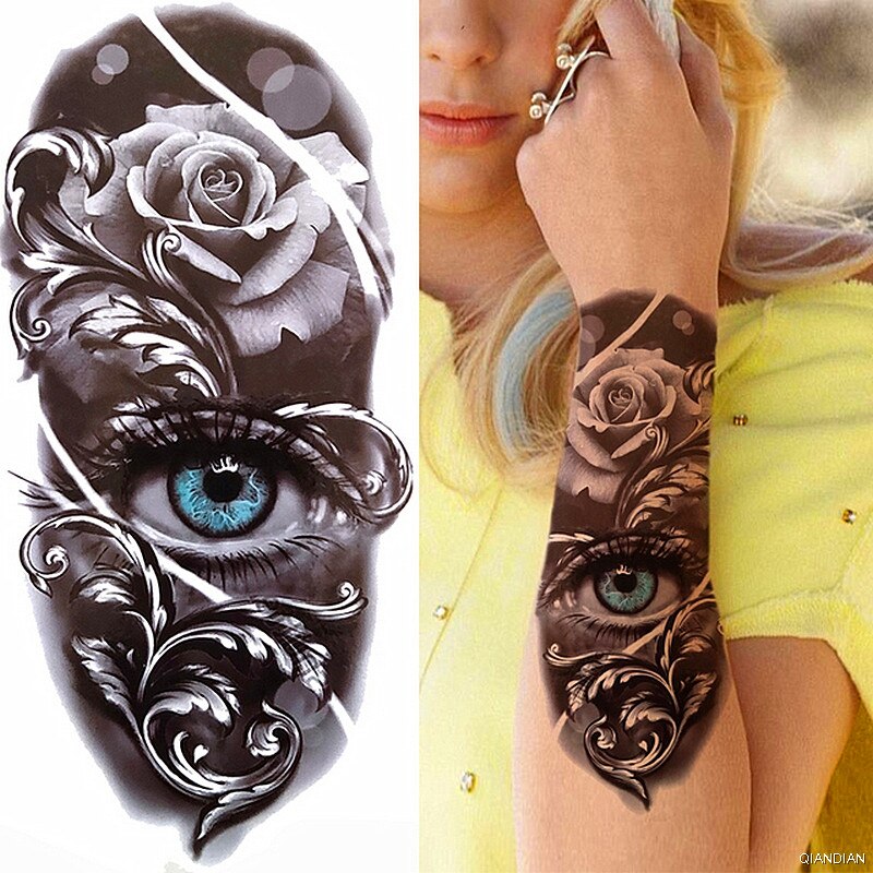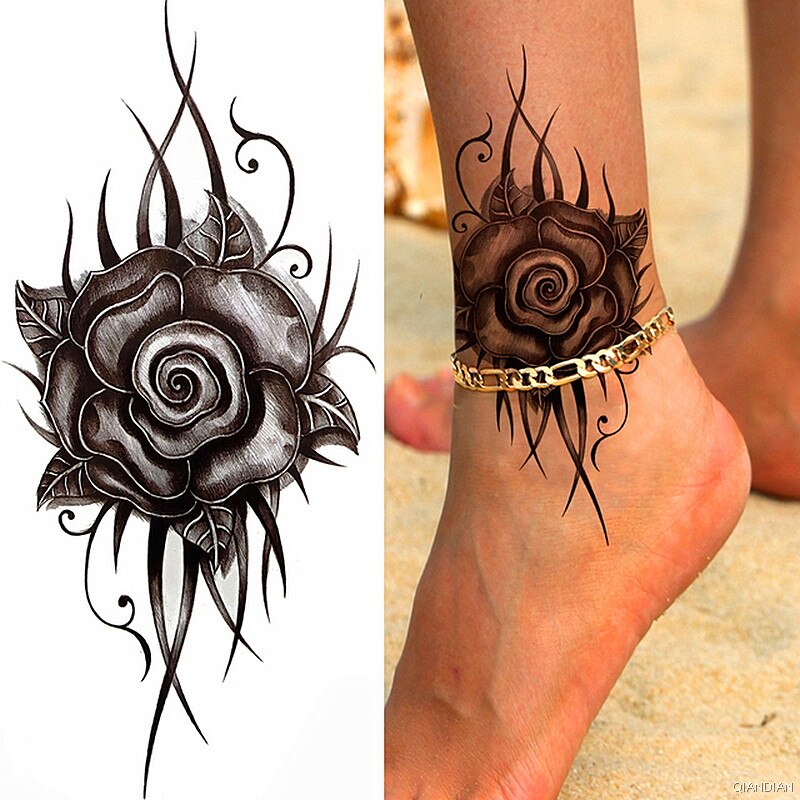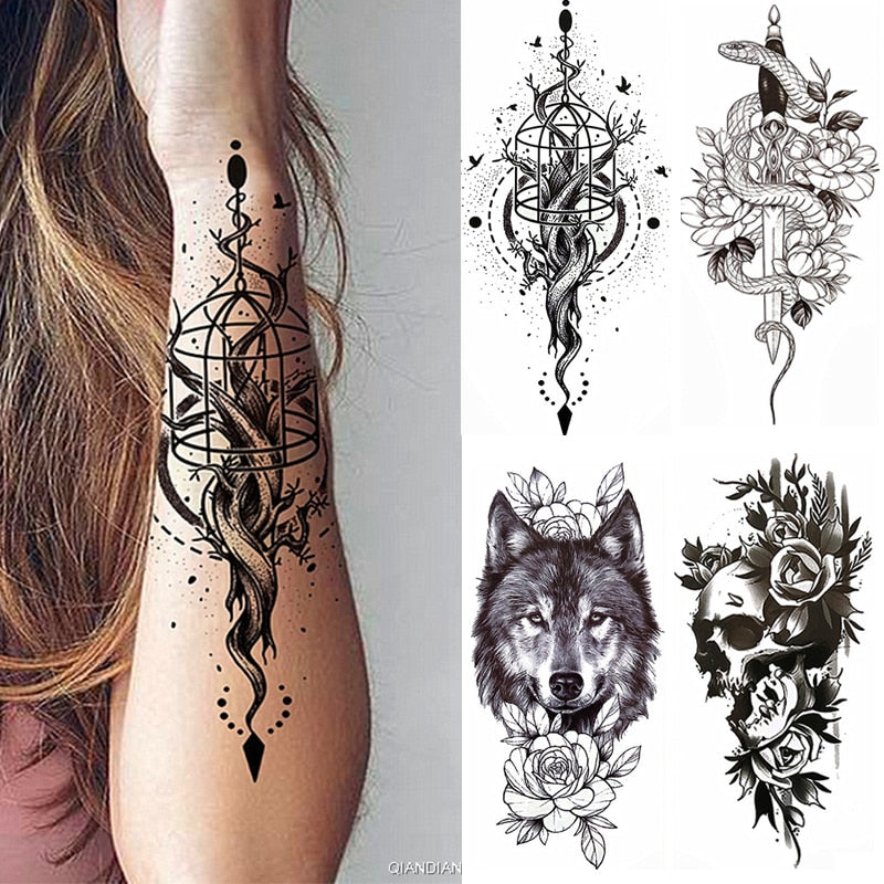 Black Sexy Flower Temporary Tattoos Sticker Arm Sleeve Rose Tree Skull Lion Bear Snake Henna Body Decorate Fake 3D Women Totem