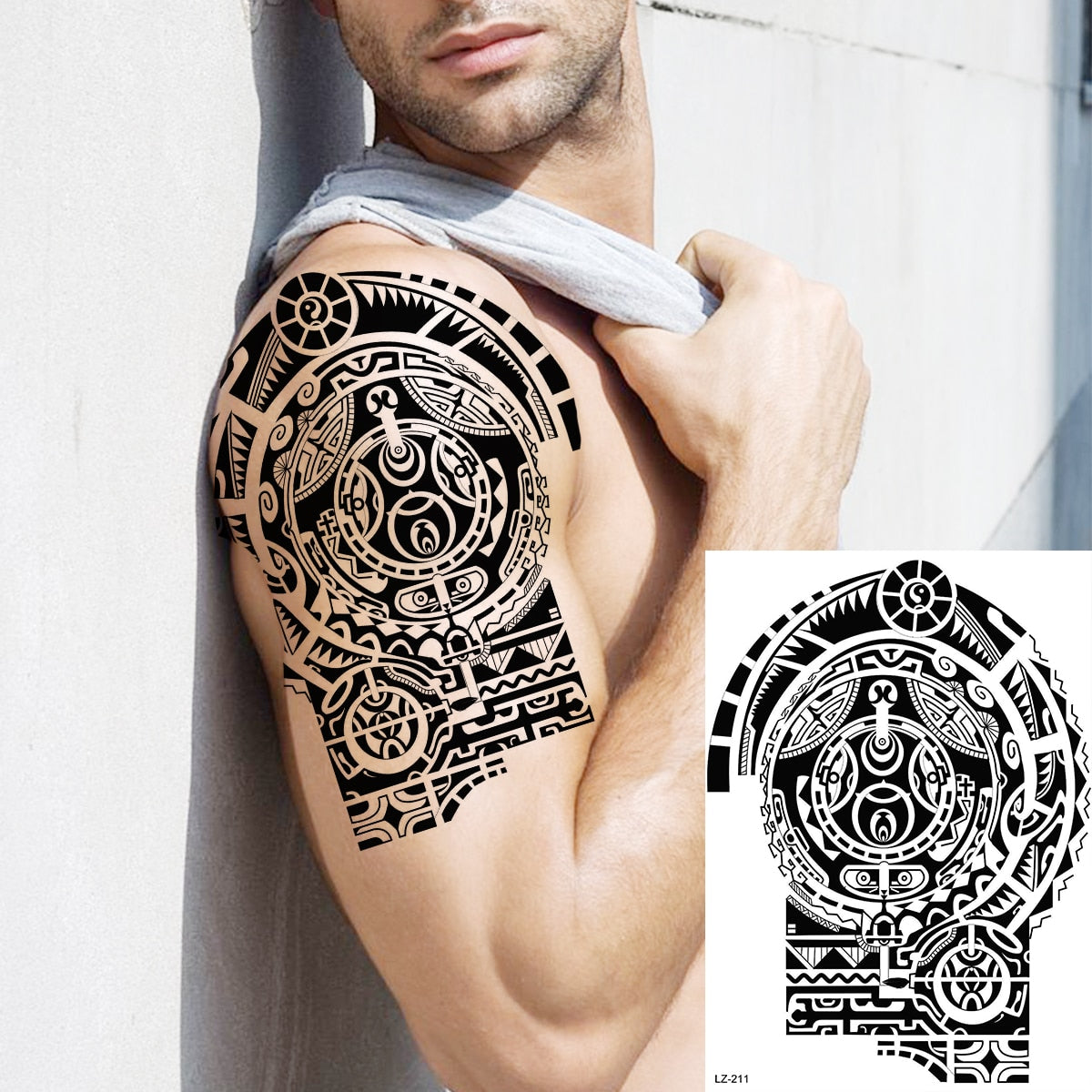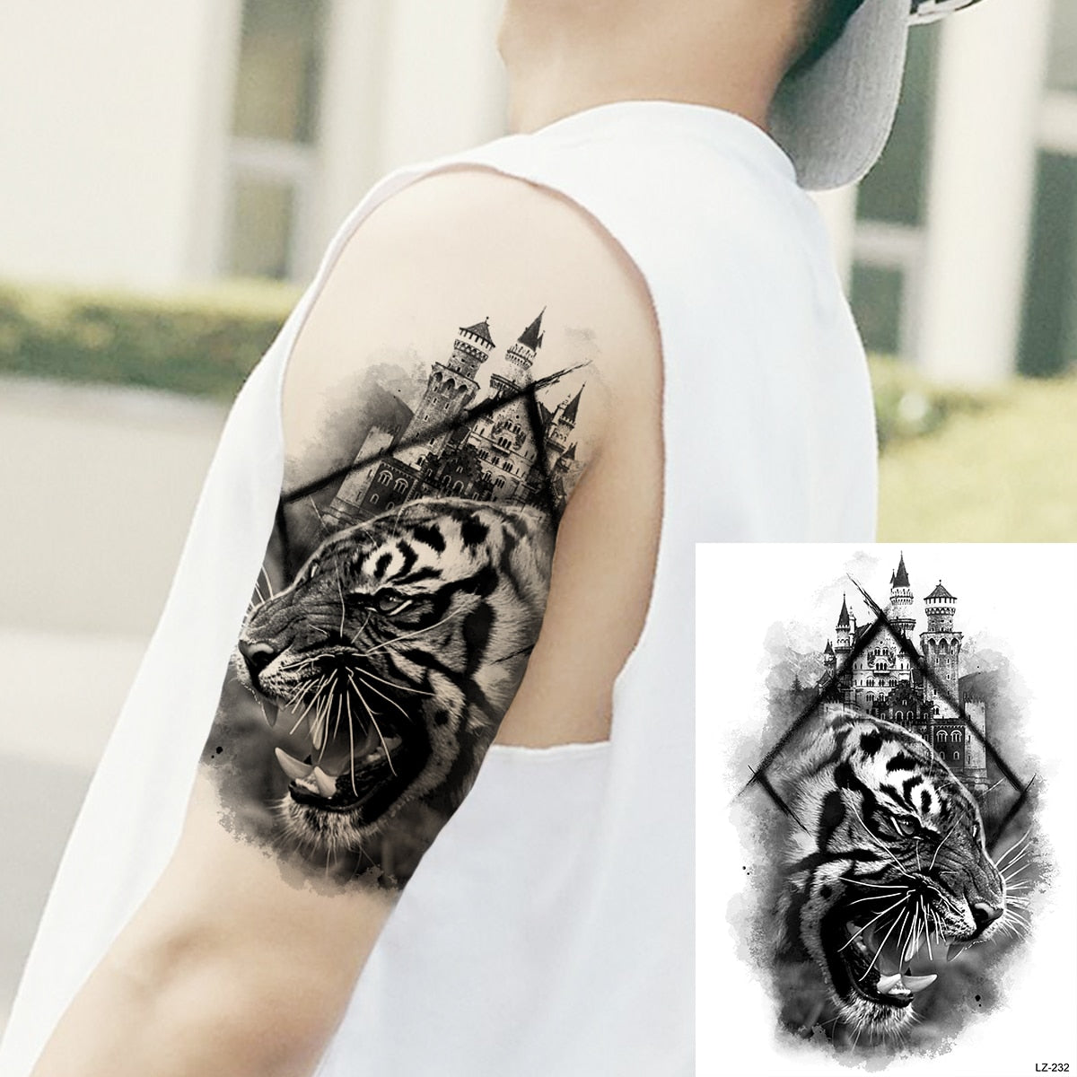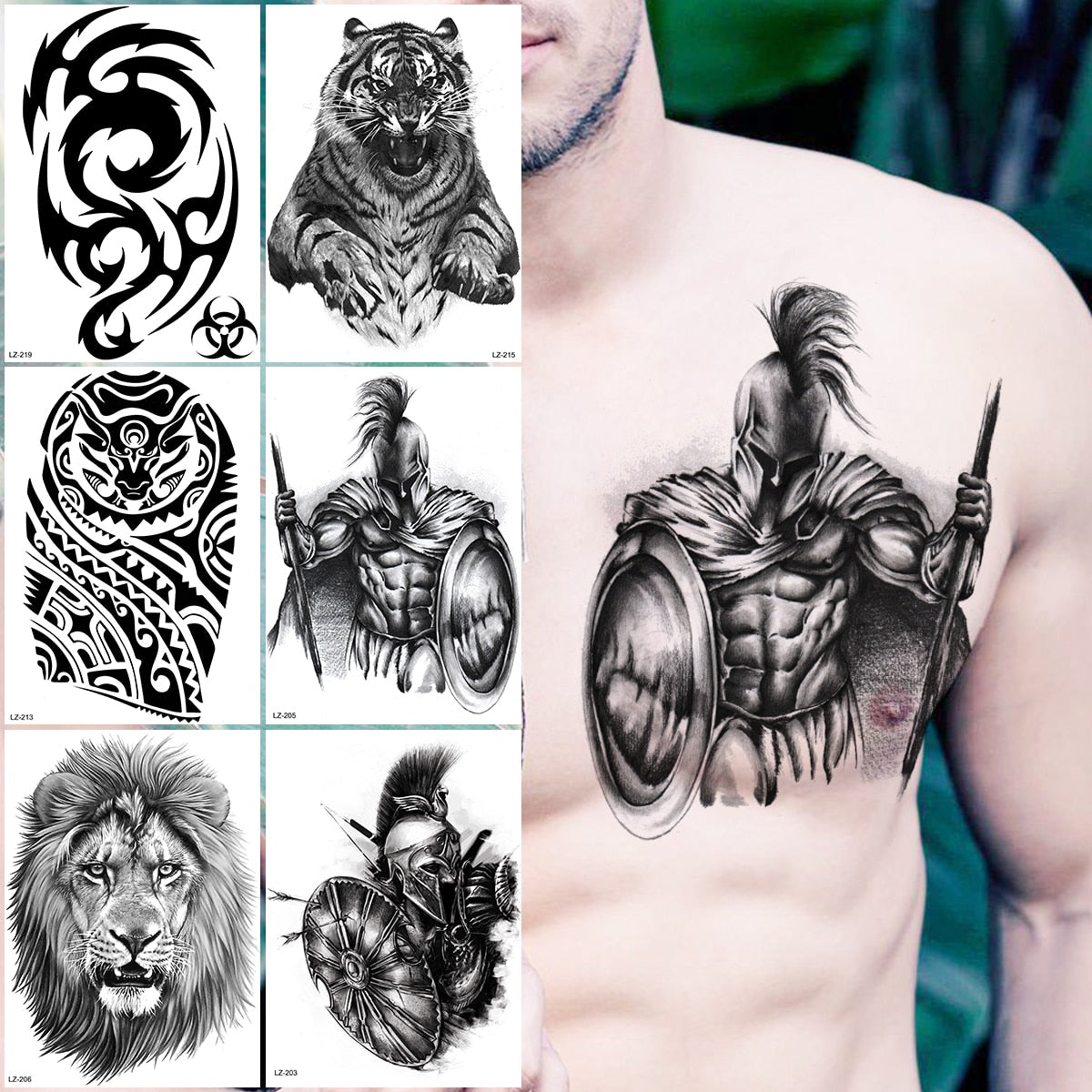 Black Spartan Warrior Temporary Tattoos For Men Adults Realistic Lion Tiger Maori Knight Fake Tattoo Sticker Chest Tatoos 3D