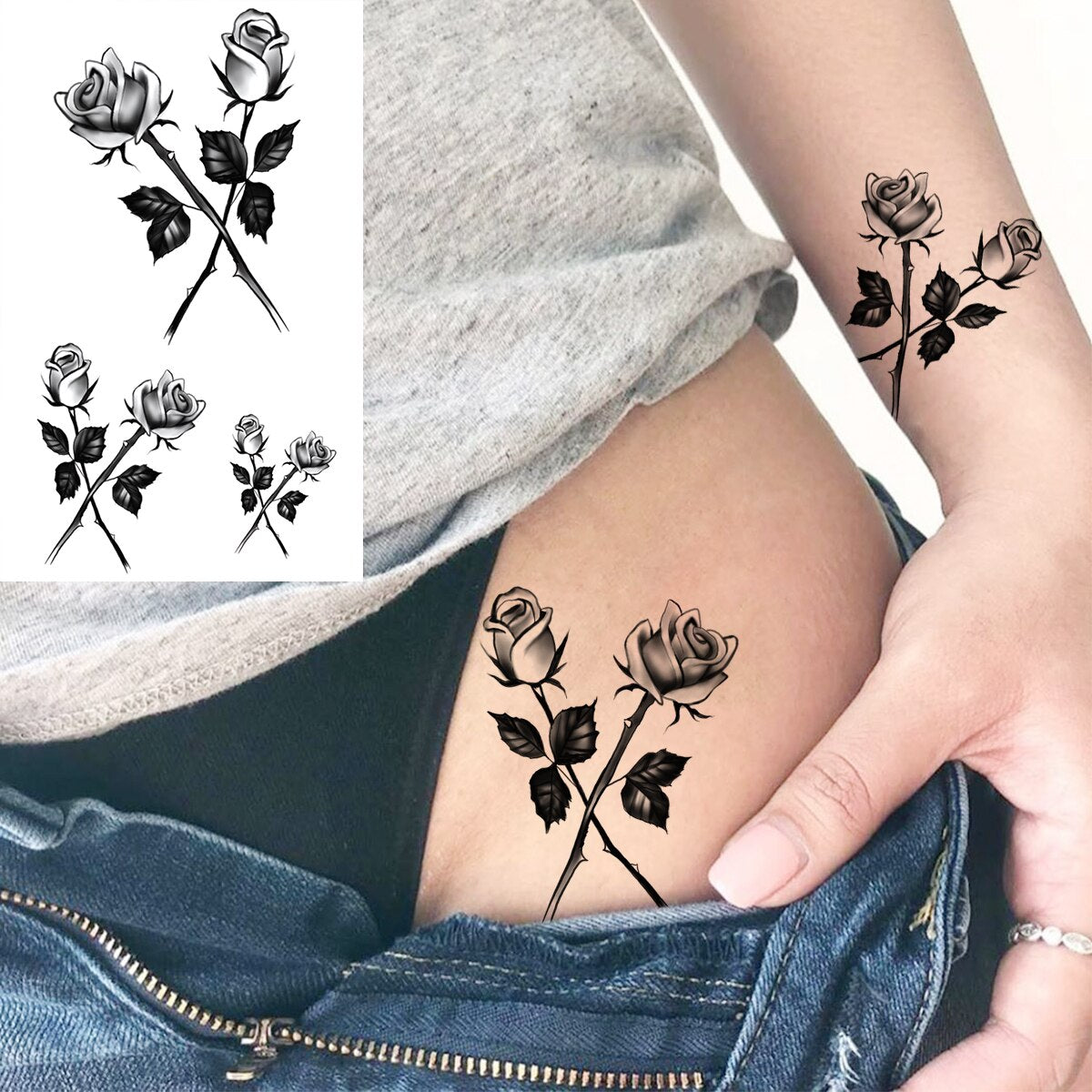 Black Universe Planet Finger Temporary Tattoos For Women Adult Rose Flower Totem Realistic Fake Tattoo 3D Fashion Washable Tatoo