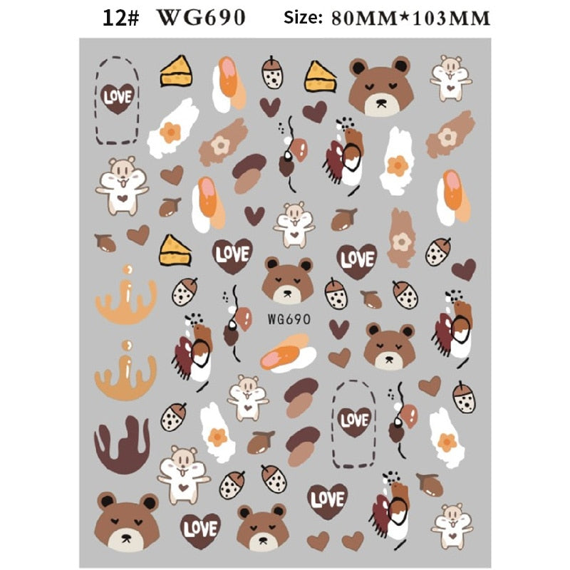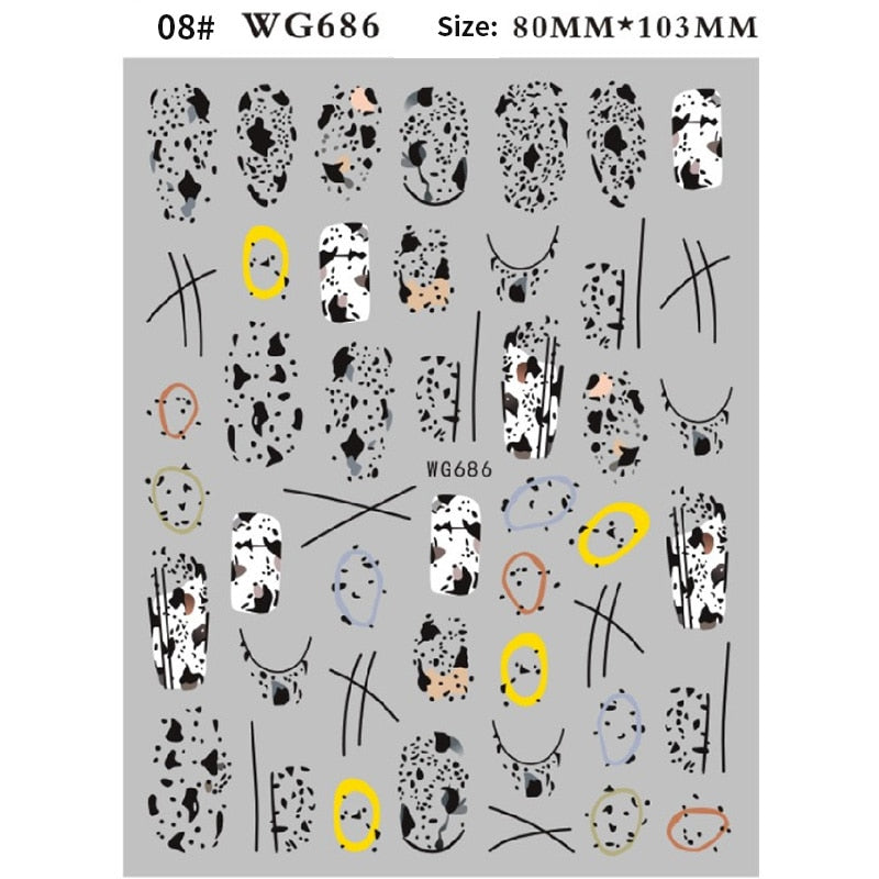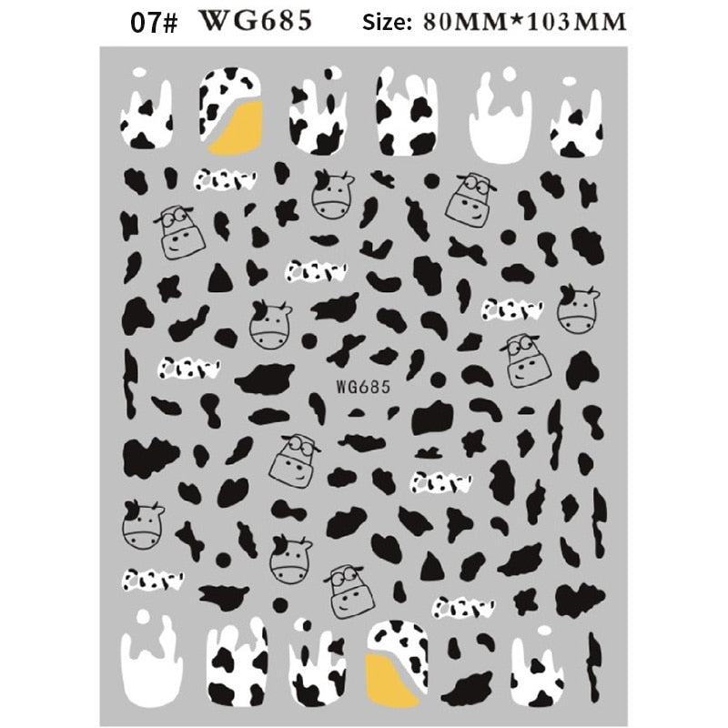 Black White Milk Cow 3D Nail Stickers Butterfly Leopard Adhesive Nail Transfer Decals Sliders Wraps DIY Nail Art Decorations