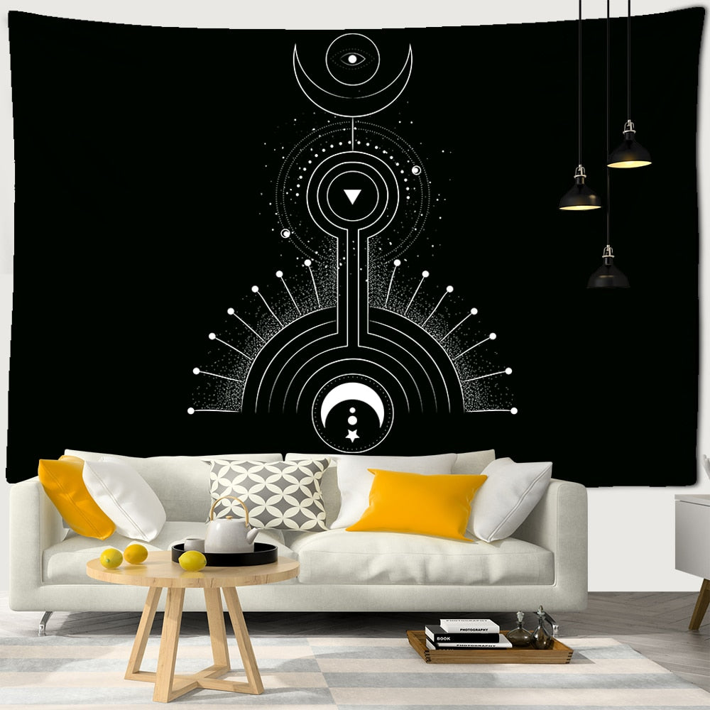 Black White Sun Moon Geometry Polyester Tapestry Mandala Bohemia Wall Hanging Polyester Yoga Mats Beach Towel Decor Livingroom