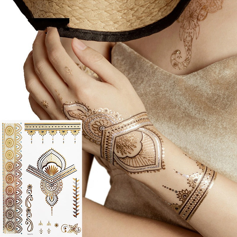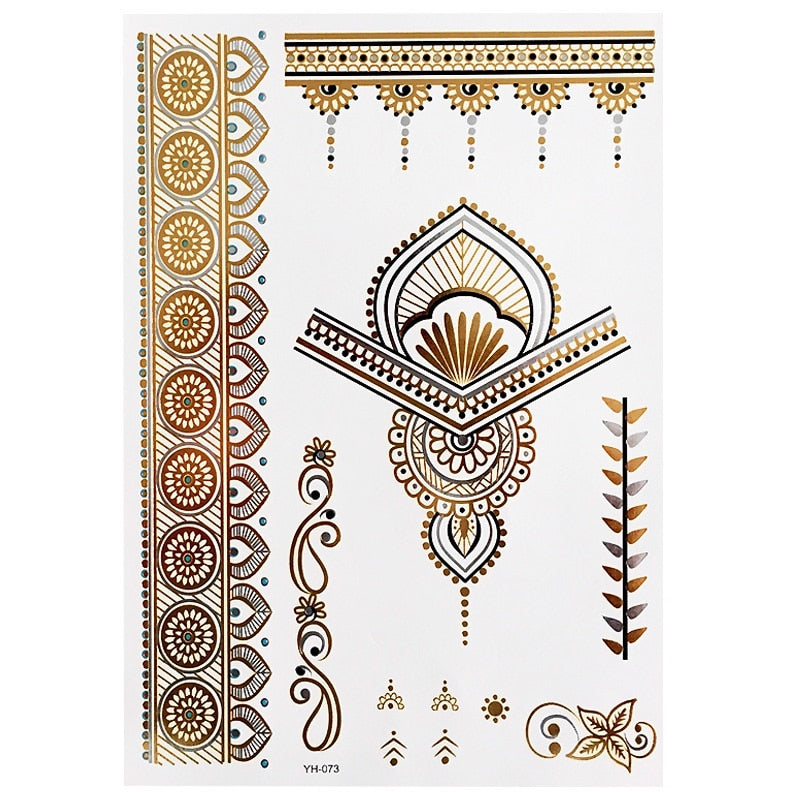 Boho Floral Temporary Metallic Tattoos Gold Silver Metallic Colors (1 Sheets)
