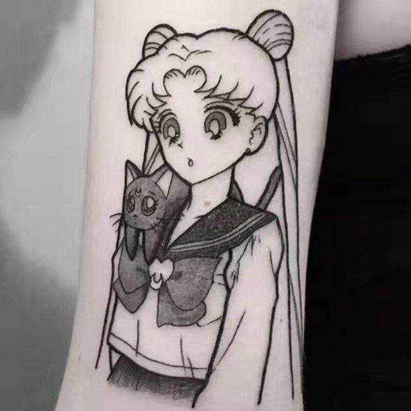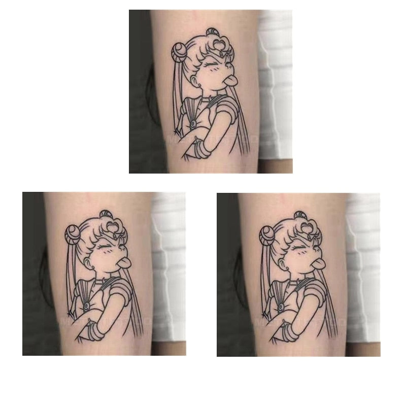 Cartoon Girl Waterproof Temporary Tattoo Sticker Female Black White Beautiful Girl Flower Arm Cat Art Fake Tattoo Fashion Tattoo