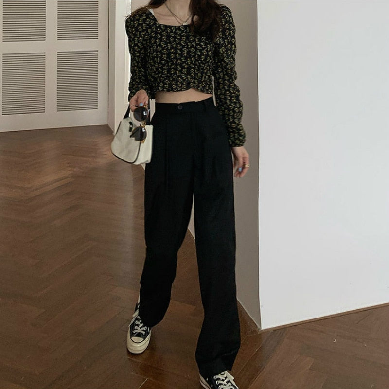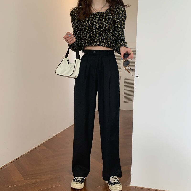Casual Pants High Waist Plus Size 3XL New Fashion Korean Style Drape Loose Wide Leg Trousers Chic Mopping Female All-match Tide