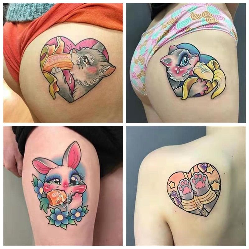 Cat Eat Banana Cartoon Sexy Temporary Tattoo Stickers Female Waterproof Cute Bunny Eat Radish Fashion Body Art Fake Tattoo Set