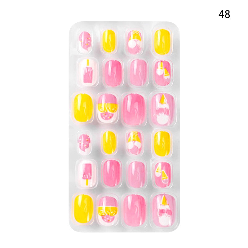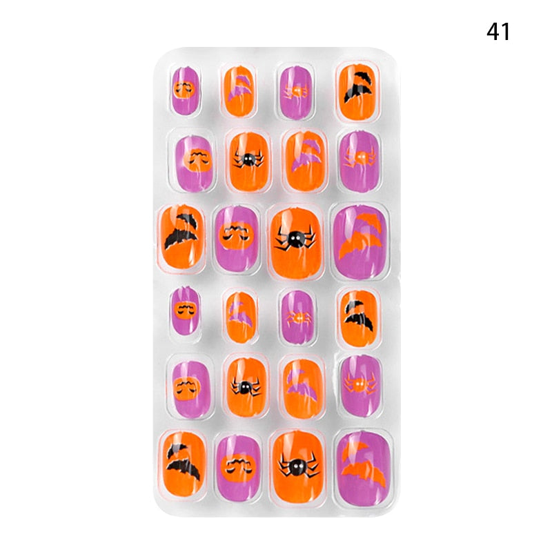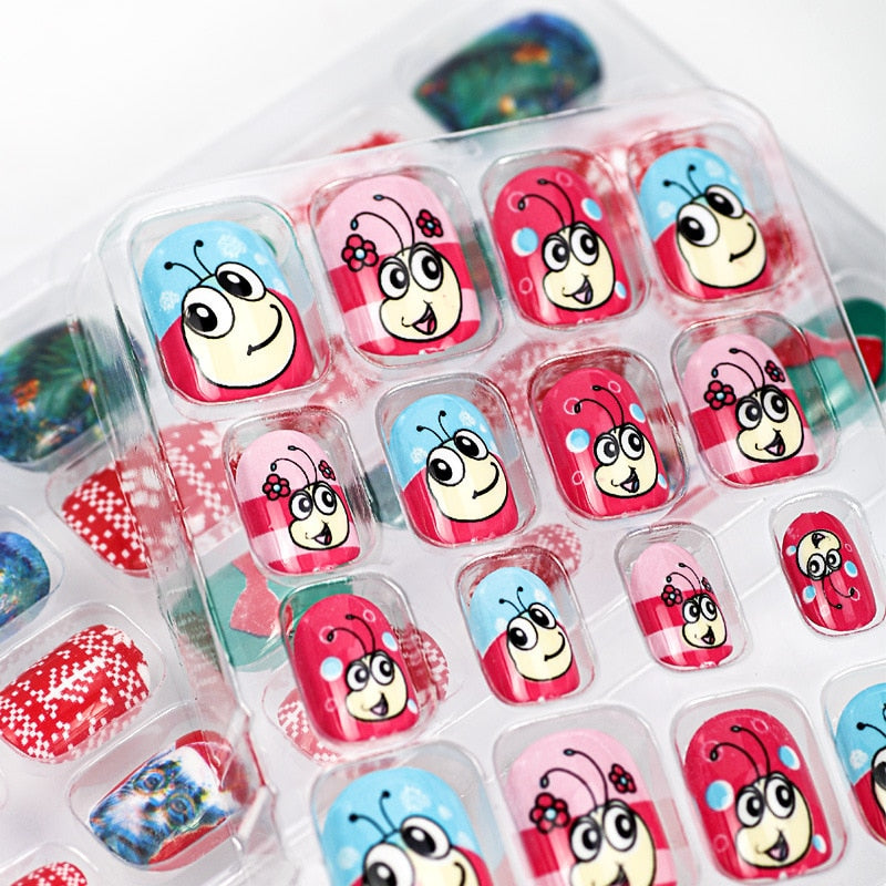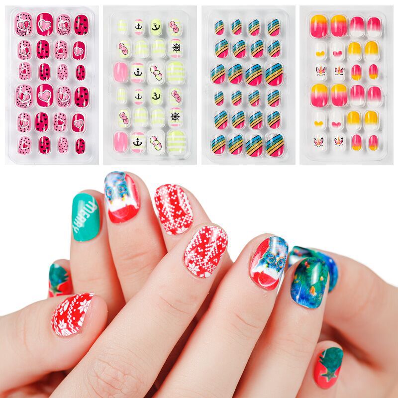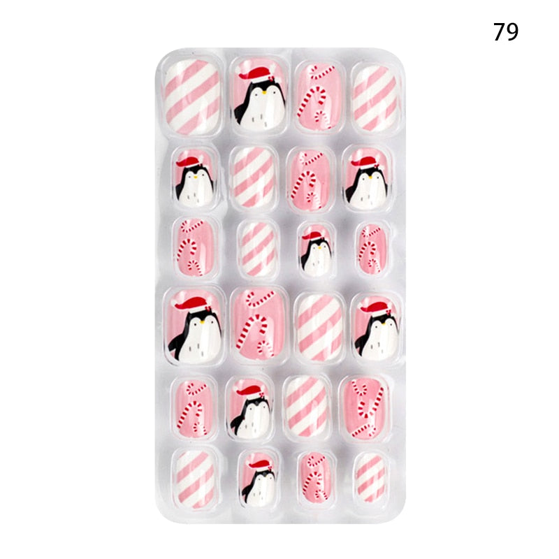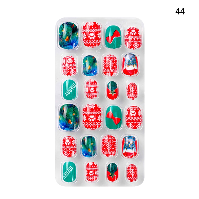 Children Adult 24 Fake Nails Christmas Cartoon Pattern Boxed Children Simple Wear-resistant Finished Full Covering Nail Sticker