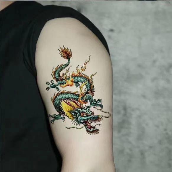 Chinese Big Colorful Dragon Fake Tattoo Stickers For Men Women Body Art Arm Temporary Tatoos Waterproof Flash Decals Tattos