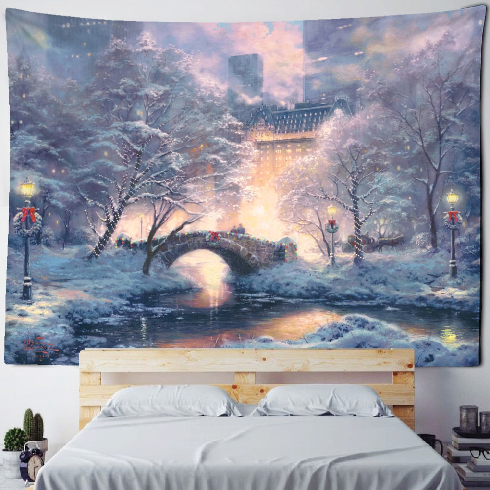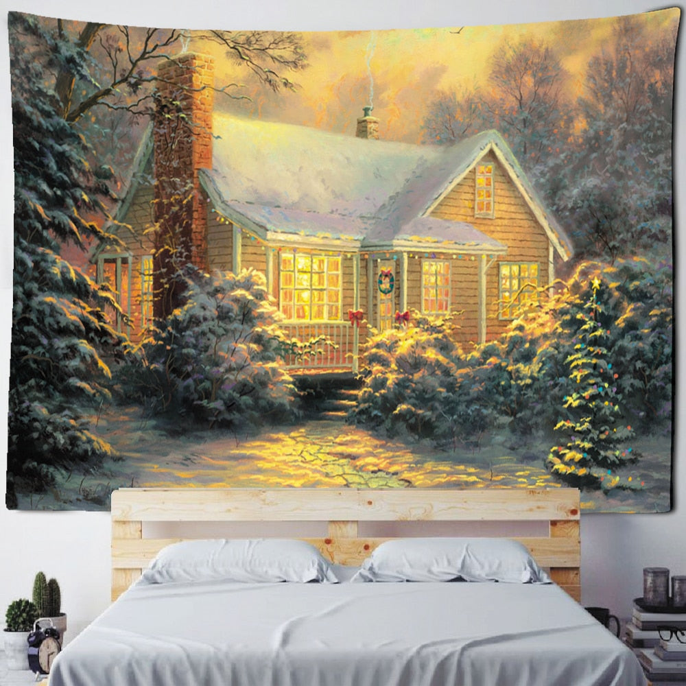 Christmas And New Year Dance Party Tapestry Wall Hanging Holiday Gift Snowman Oil Painting Art Room Home Decor