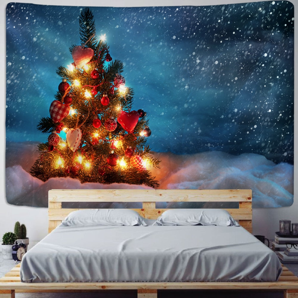 Christmas Tapestry Watercolor Christmas Tree Printing Bedside Hanging Cloth Bedroom Background Cloth Wall Decoration Cloth