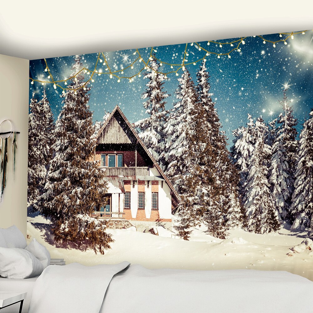 Christmas Village Wooden House Tapestry Ice And Snow Style Wall Hanging Merry Christmas Tapestry For Home Deco Christmas Gift