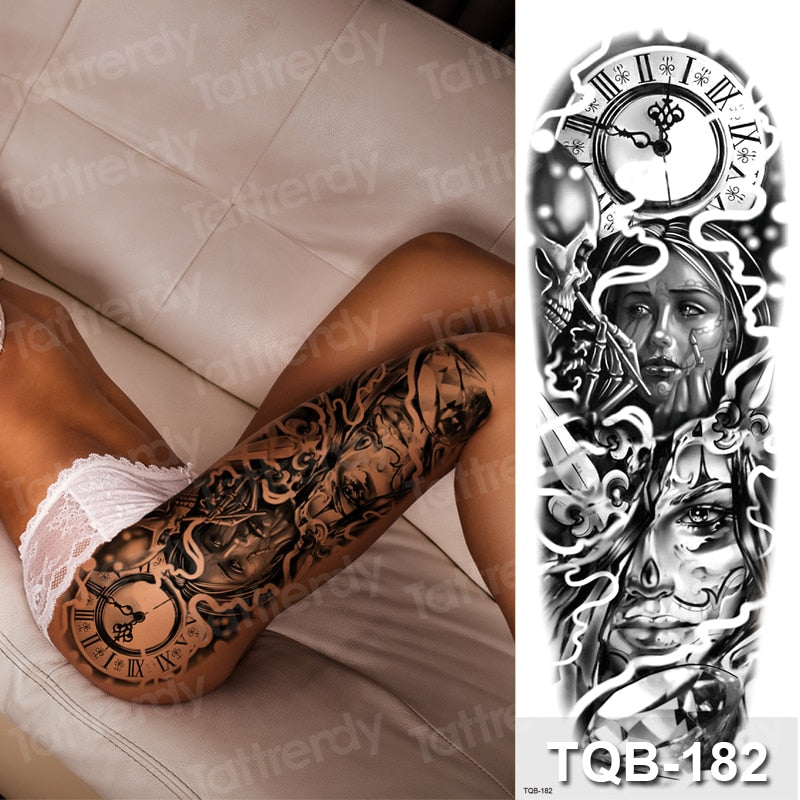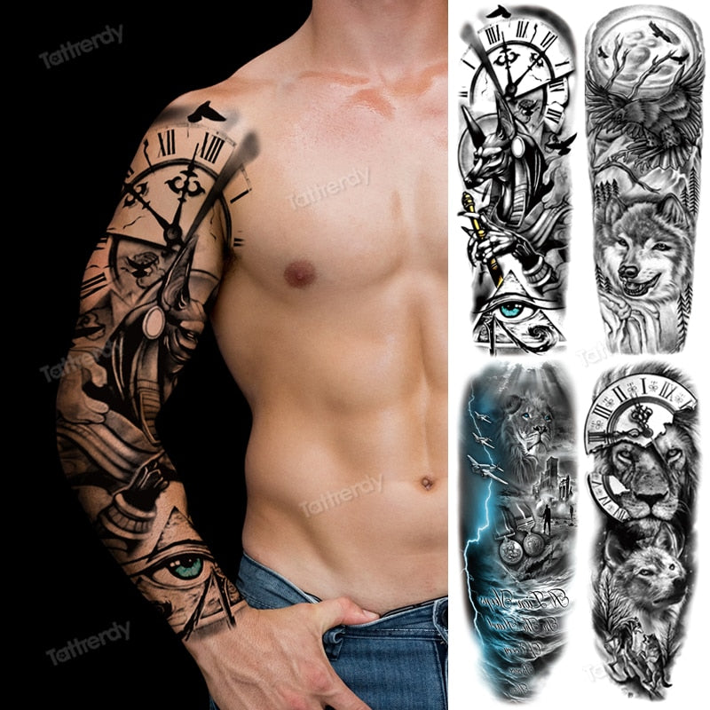 clock lion king fox forest temporary tattoos men sexy body art makeup tattoo sticker black waterproof custom totem maori tatoo