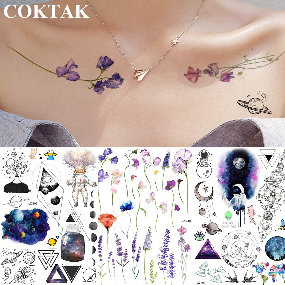 COKTAK Lavender Morning Glory Temporary Tattoos Sweet Peas Flower Body Art Arm Wrist Tatoos Waterproof DIY Fake Tattoo Stickers