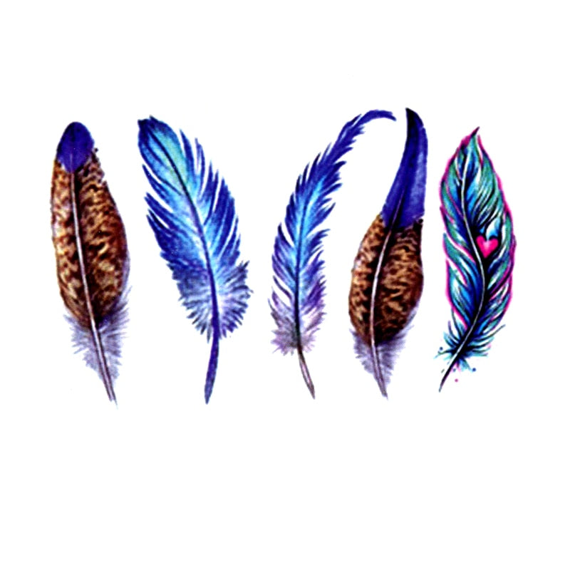 Colored Feather Waterproof Temporary Tattoo Sticker Body Transfer Tattoo Men Henna Tatoo Fake Tattoo Sleeves Cool Tatouage