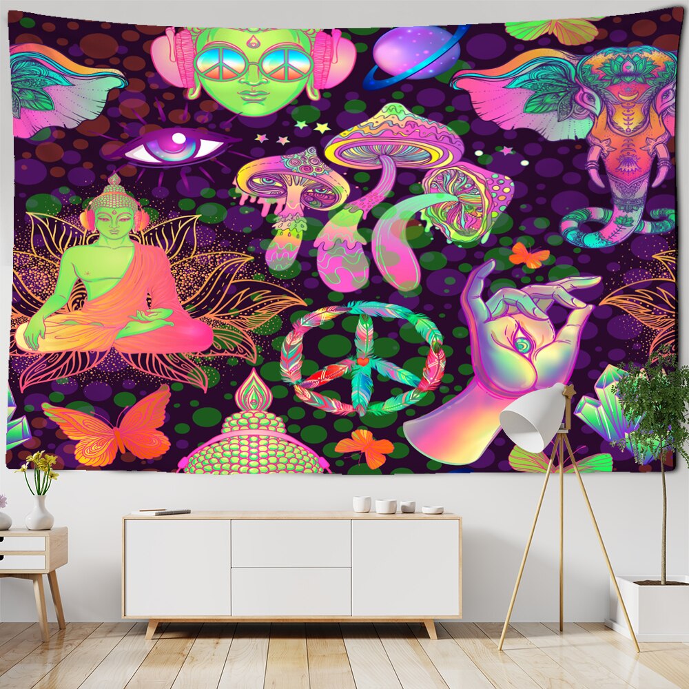 Colorful Mushroom Tapestry Indian Mandala Elephant Buddha Wall Hanging Bohemian Gypsy Psychedelic Tapiz Witchcraft Tapestry
