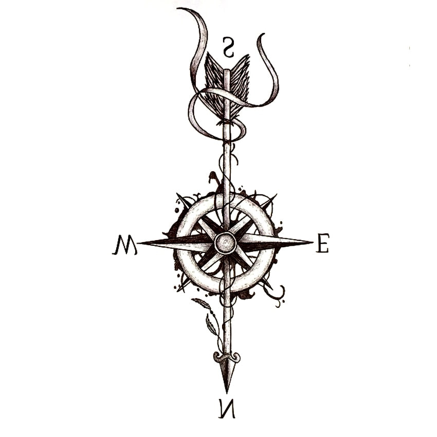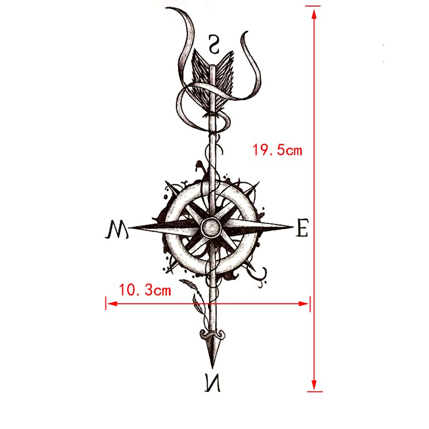 Compass Arrow Waterproof Temporary Tattoo Sticker Harajuku Arrow Tatouage temporaire Tattoo Body Art Henna Tatoo Stickers