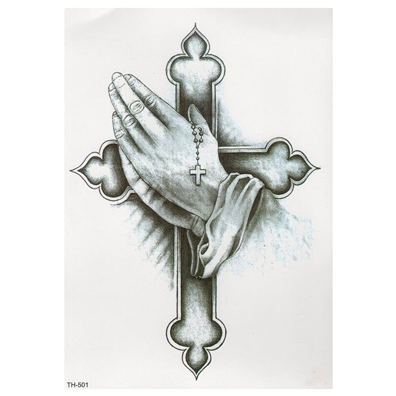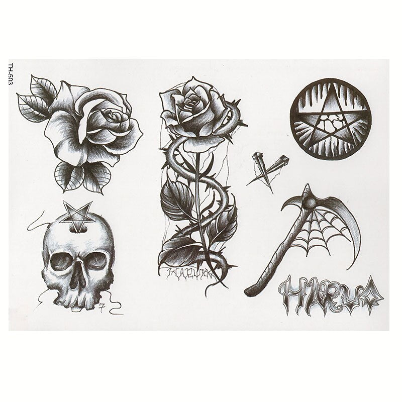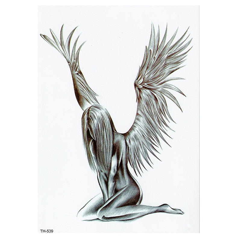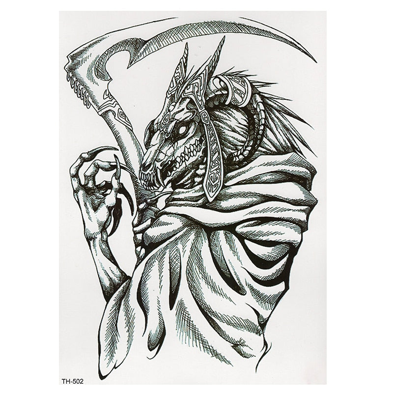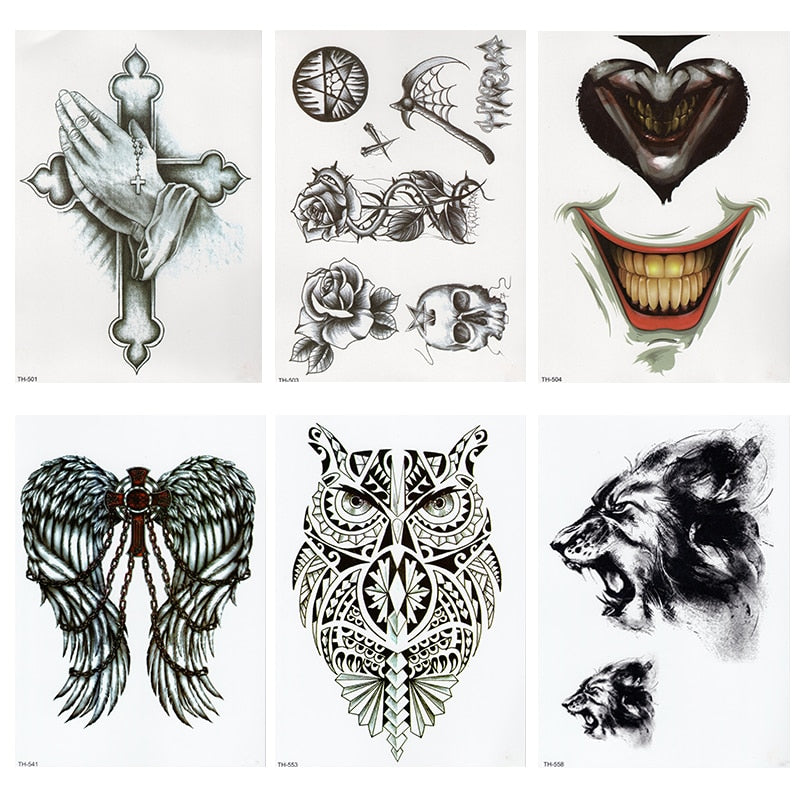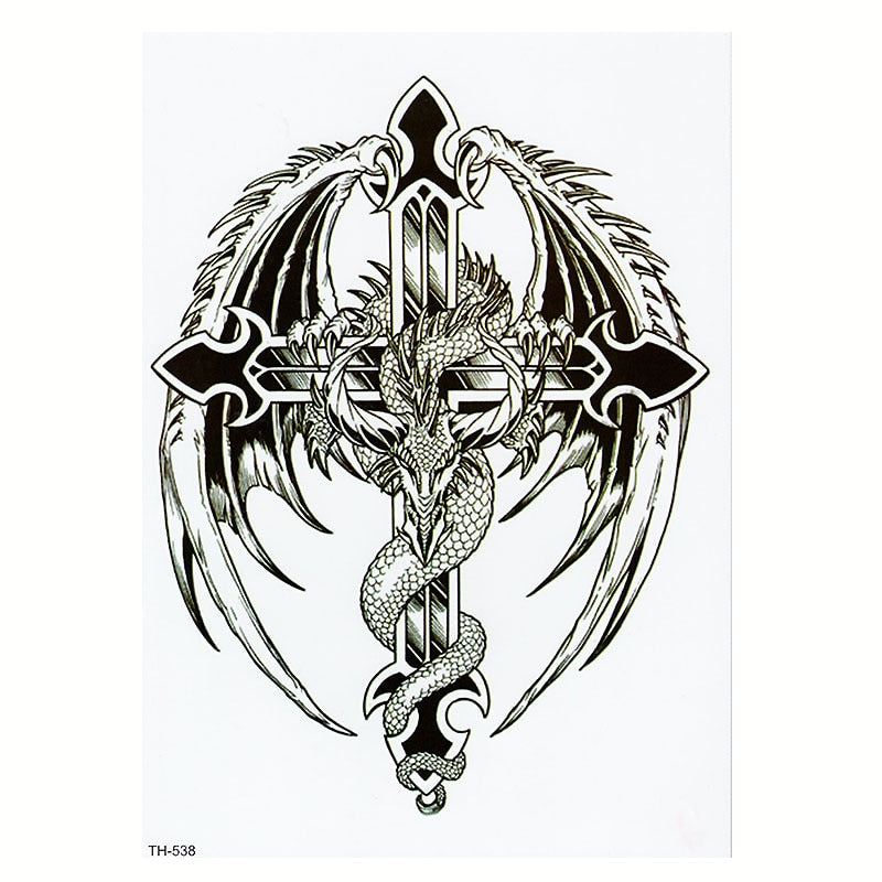 CROWN SKULL SCYTHE DEATH ANGEL WINGS CROSS TEMPORARY TATTOO, CRUCIFIX, BODY ART, MENS, WOMENS