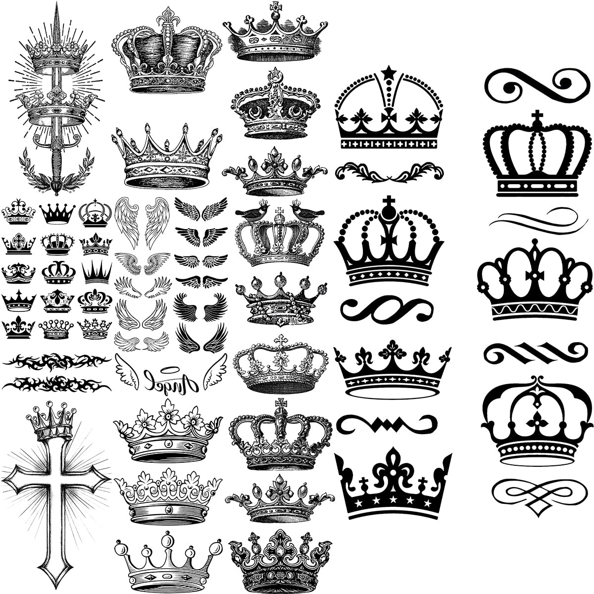 Crown Temporary Tattoos For Women Men Realistic Cross Sword Angel Wings Thorns Fake Tattoo Sticker Body Waterproof Tatoos Black