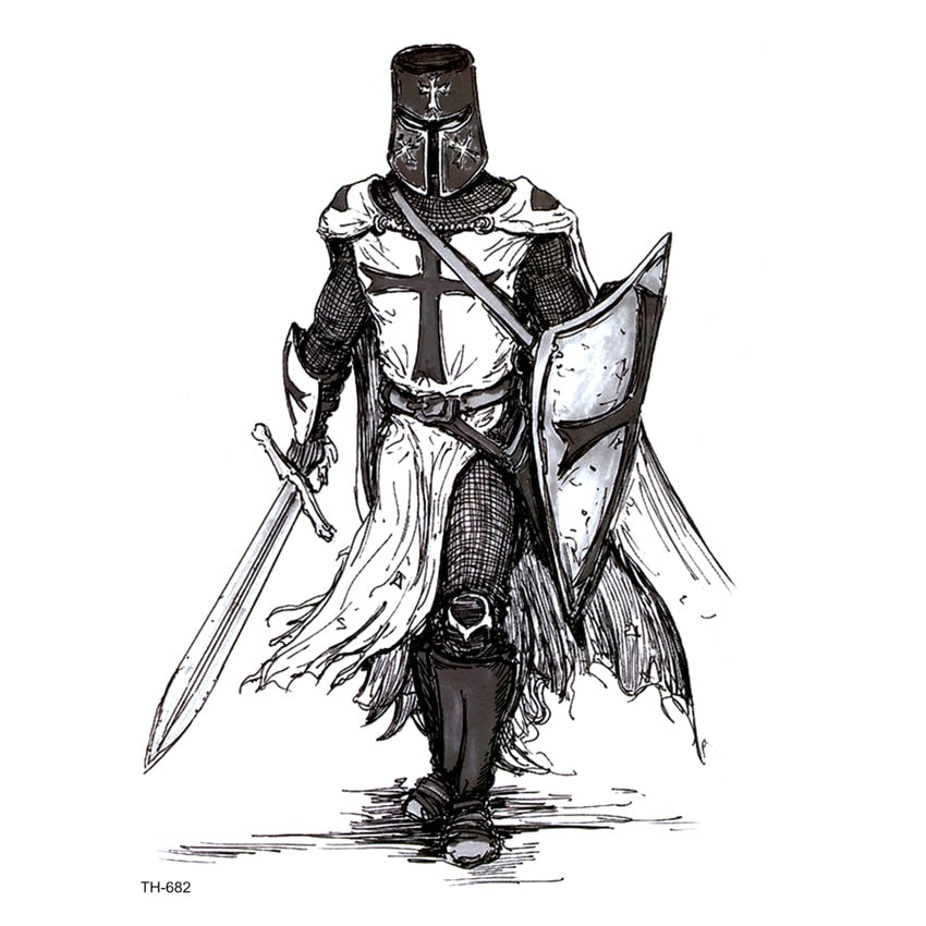 Crusader Warrior Waterproof Temporary Tattoo Sticker On Body Art Tattoo Sword Fake Tattoo Henna Temporary Tatoo Sleeve