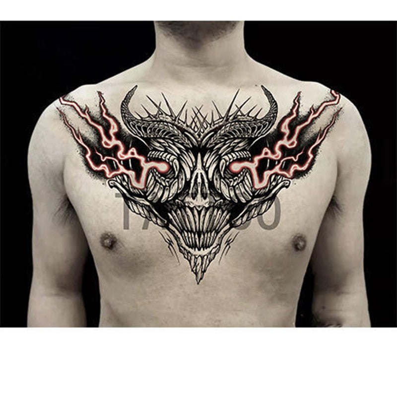 Dark Big V Flower Body Temporary Tattoo Stickers Men and Women Body Art Sexy Rock Cool Fake Tattoo Chest Clavicle Tattoo Sticker
