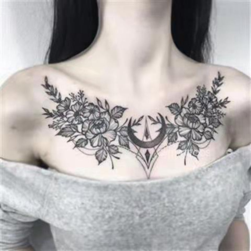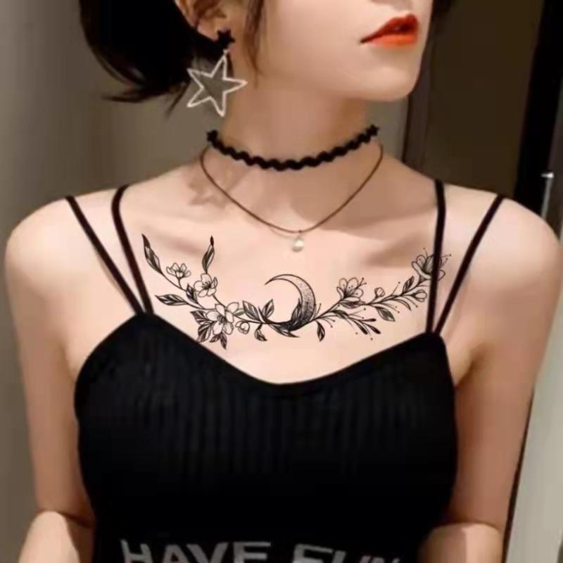 Dark Flower Temporary Tattoo Female Waterproof Sexy Gothic Clavicle Water Transfer Art Fake Tattoos Arm Chest Tattoo Stickers
