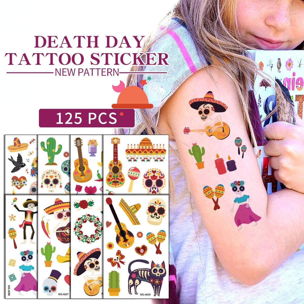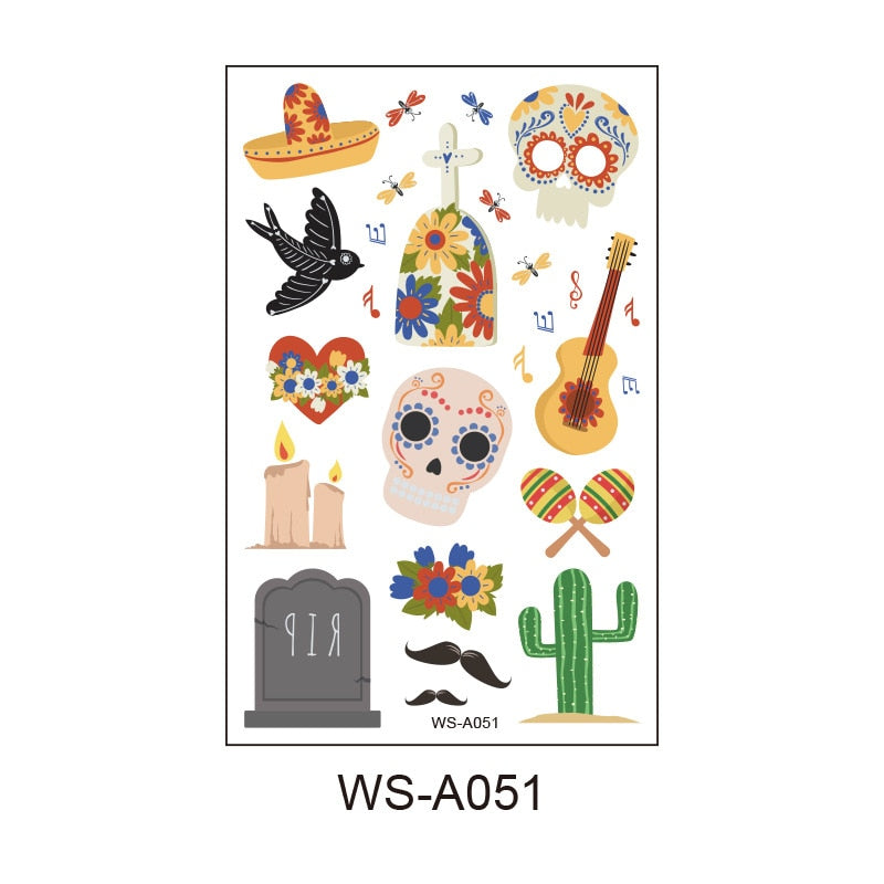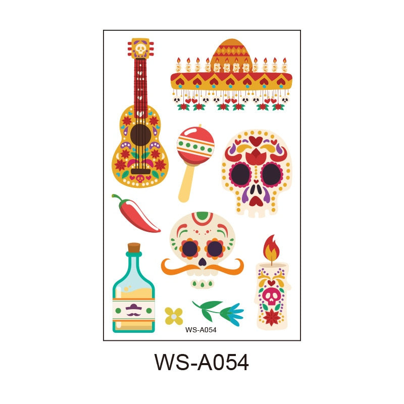 Day of the Dead Tattoo Sticker Skull Day Day of the Dead Children's Masquerade Horror Party Tattoo Sticker