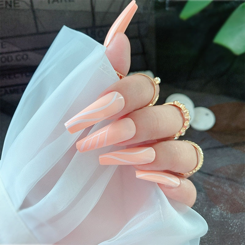 Detachable Heart Long Coffin False Nails Wearable Orange love gradient Ballerina Fake Nails Full Cover Nail Tips Press On Nails