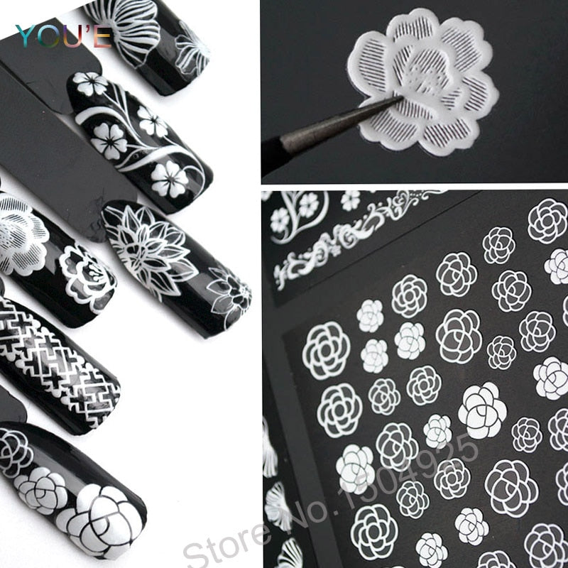 DIY White Flower Nail Stickers Decoration Manicure Foil 3D Nail Art Decorations Stickers Design Adhesive Lace Nail Decals Slider