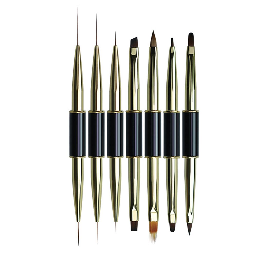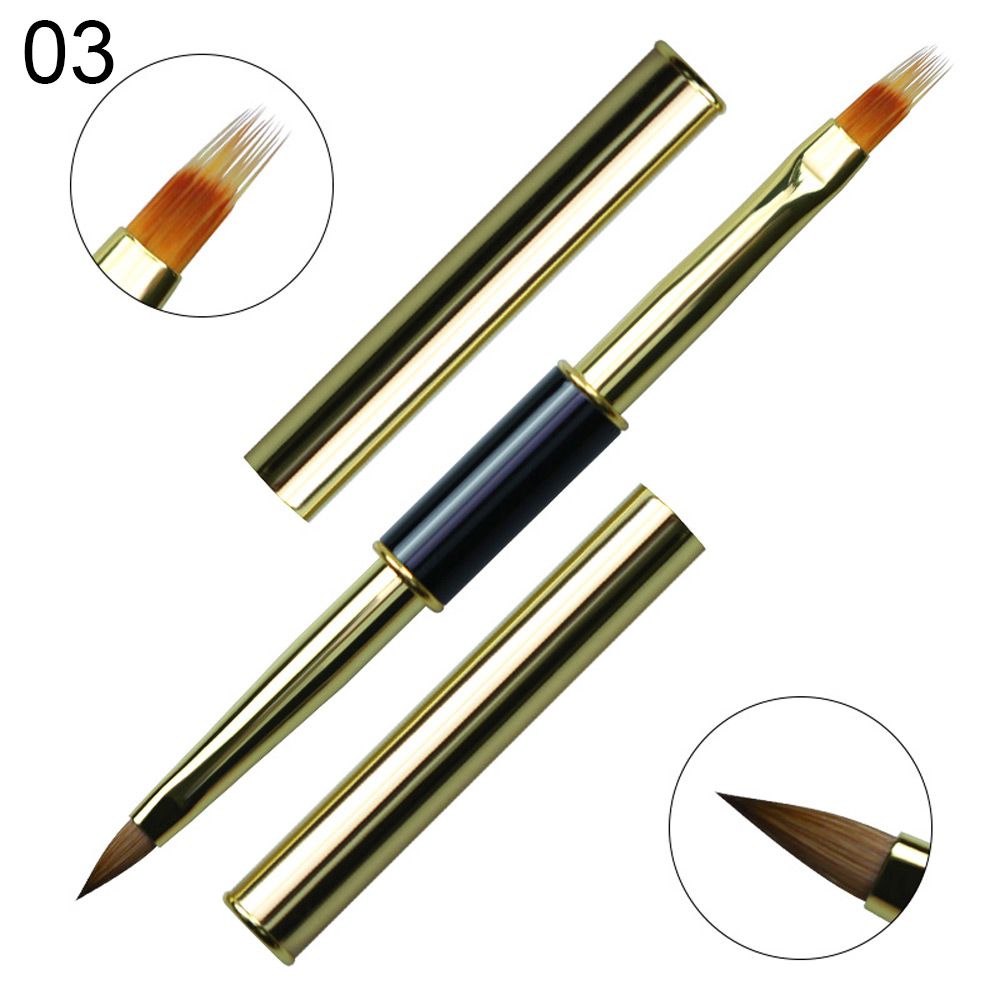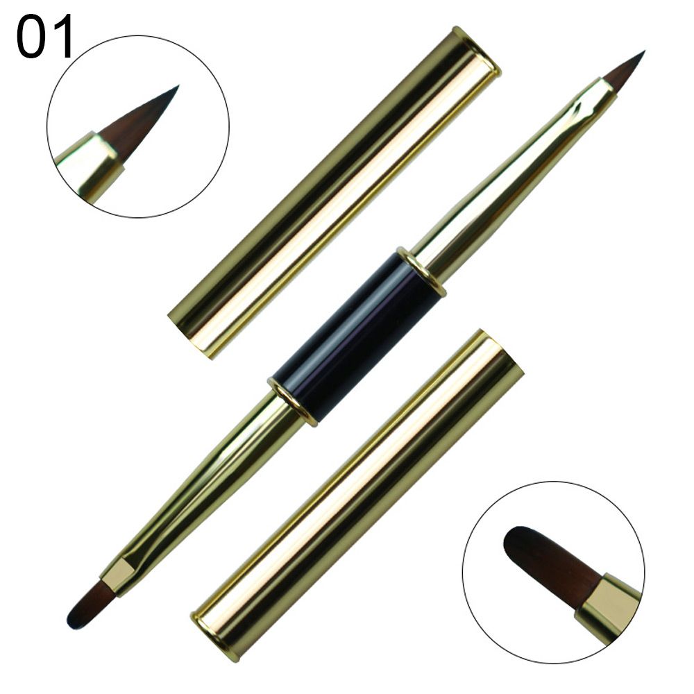 Double Head Nail Art Liquid Powder Brush Nail Extension Builder Acrylic UV Gel Lined Drawing Pen Fan-shaped Blooming Tool