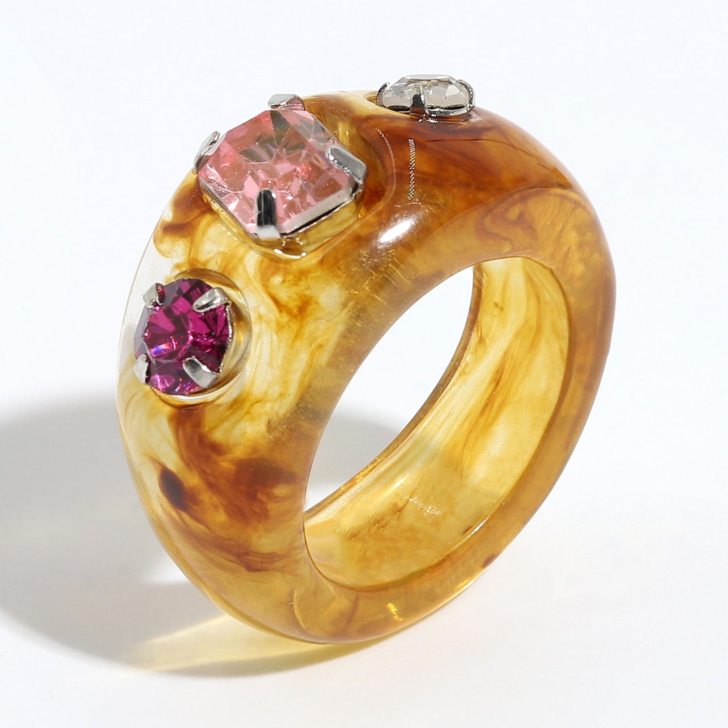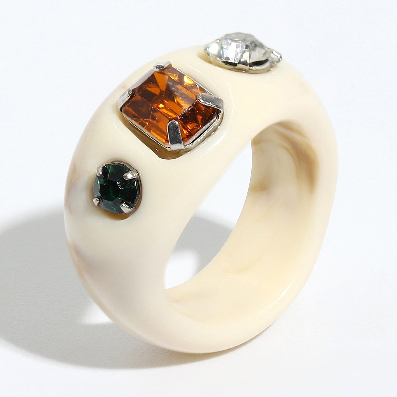 Dvacaman 2021 New Trendy Colorful Dripping Oil Resin Rhinestone Geometric Rings Hand-Painted Open Rings for Women Party Jewelry