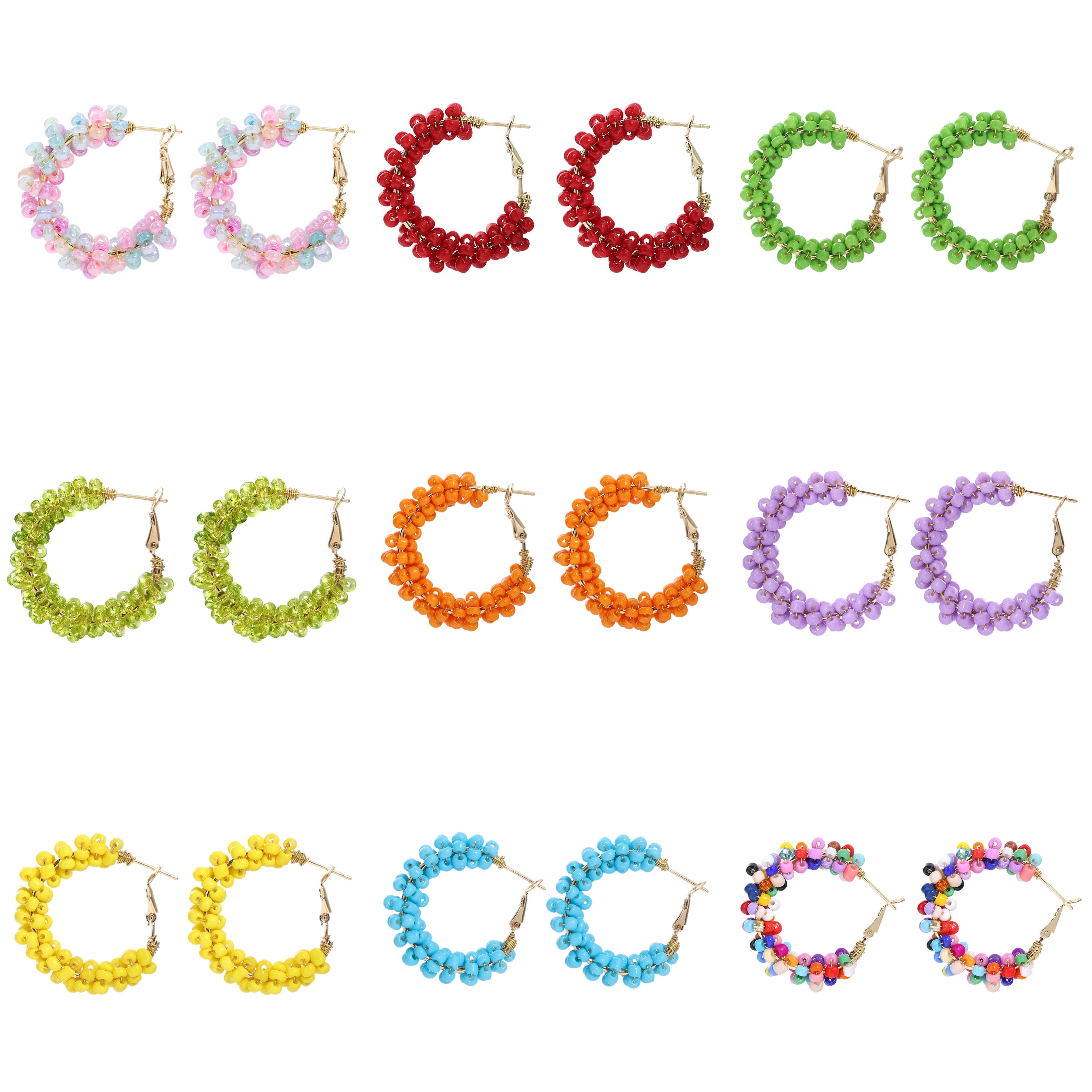 Dvacaman Bohemian Multicolor Beaded Hoop Earrings For Women Handmade Seed Beads Earrings Gold C-Shaped Jewelry Wholesale Brincos