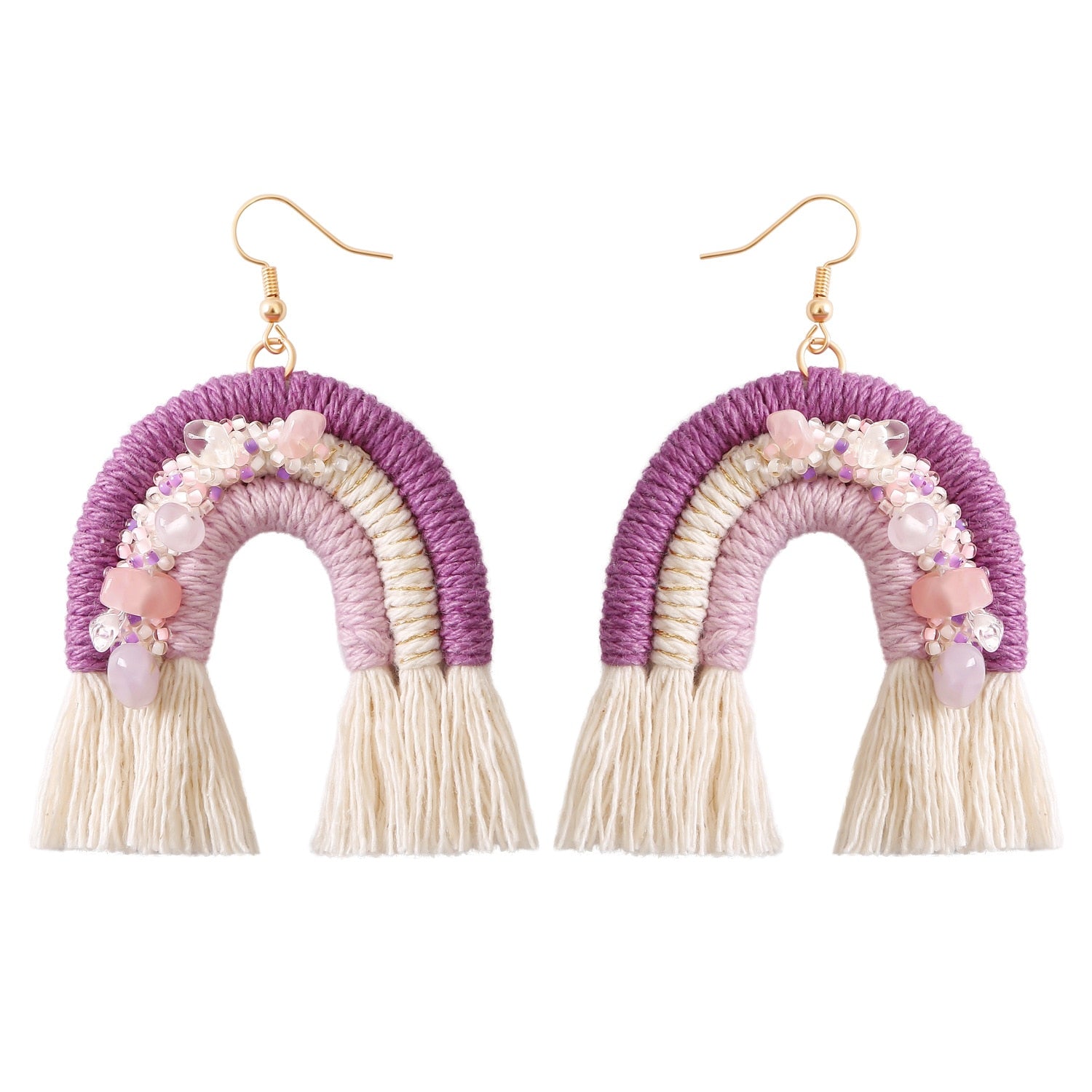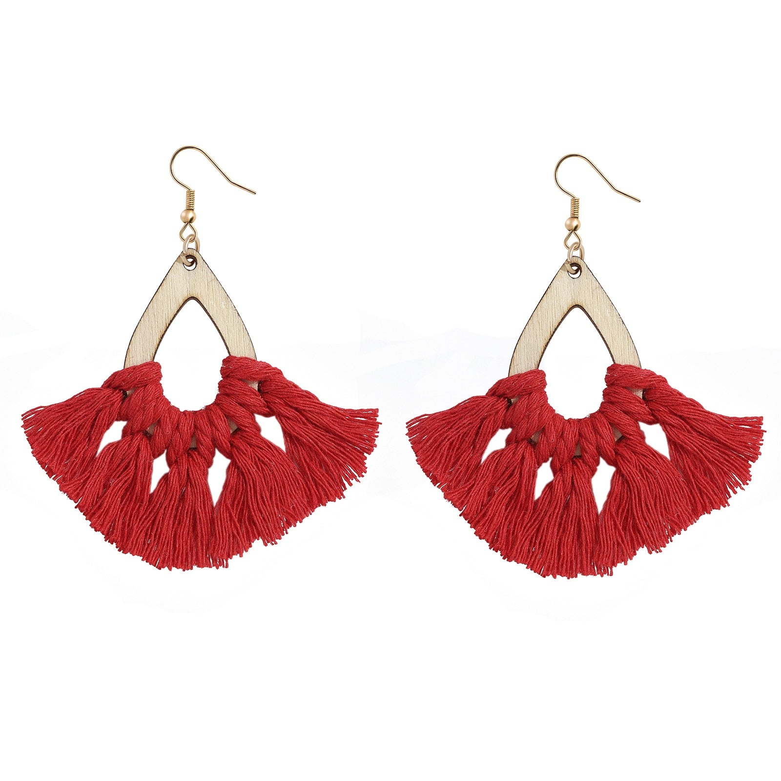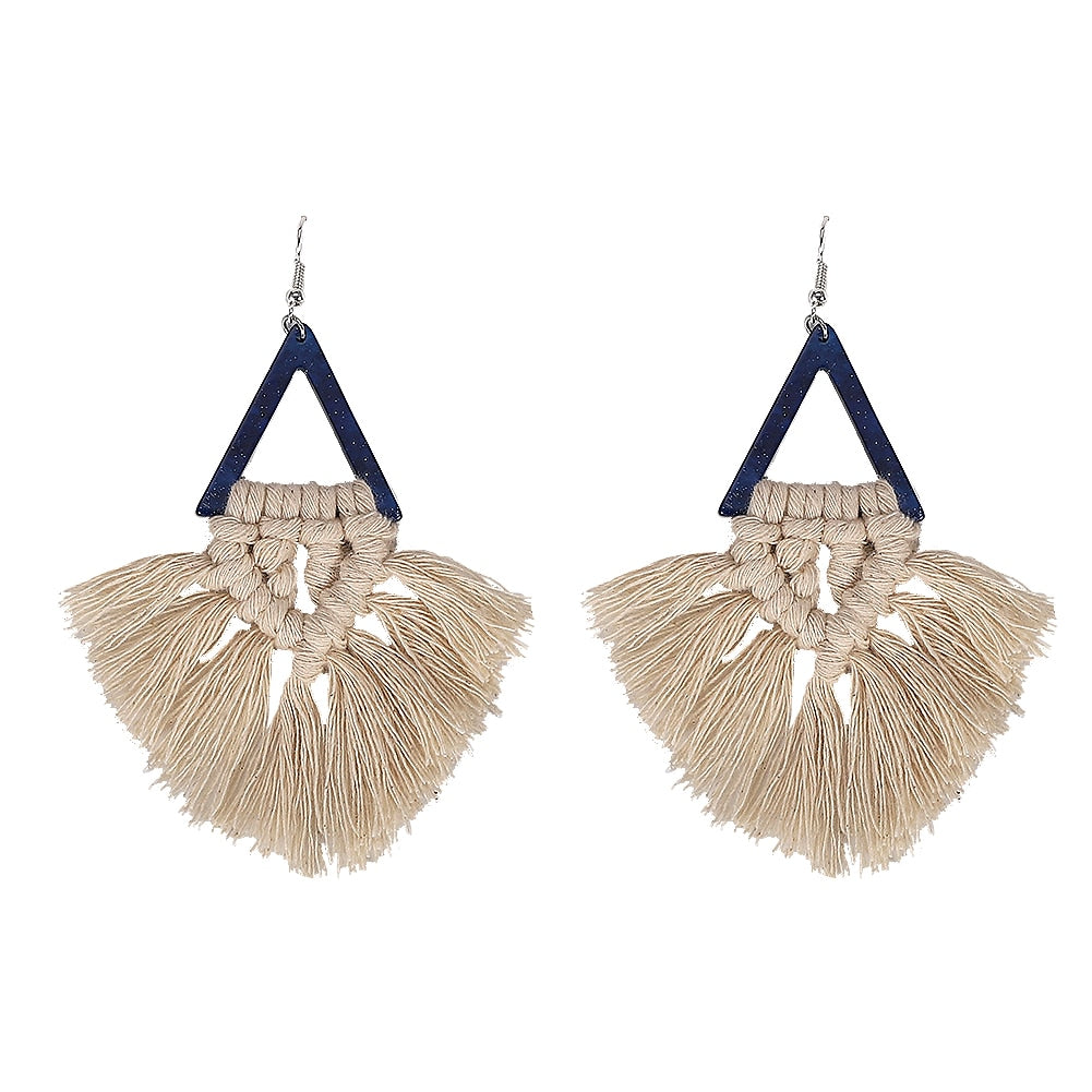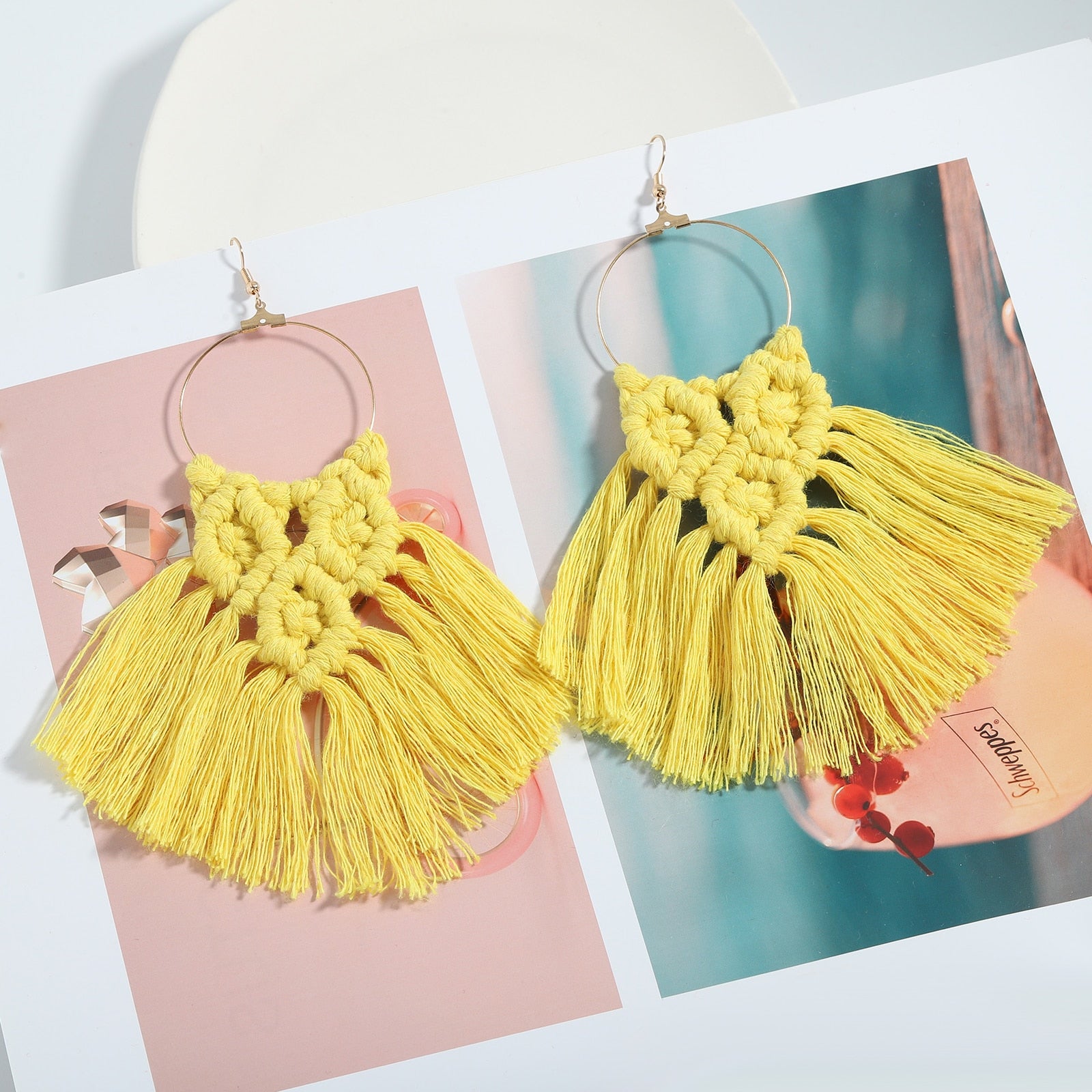 Dvacaman Boho Ethnic Colorful Tassel Macrame Earrings Handmade Cotton Thread Fringed Knotted Pendant Earrings for Women Jewelry