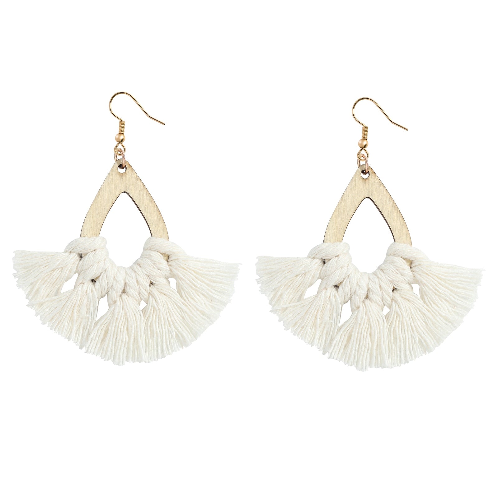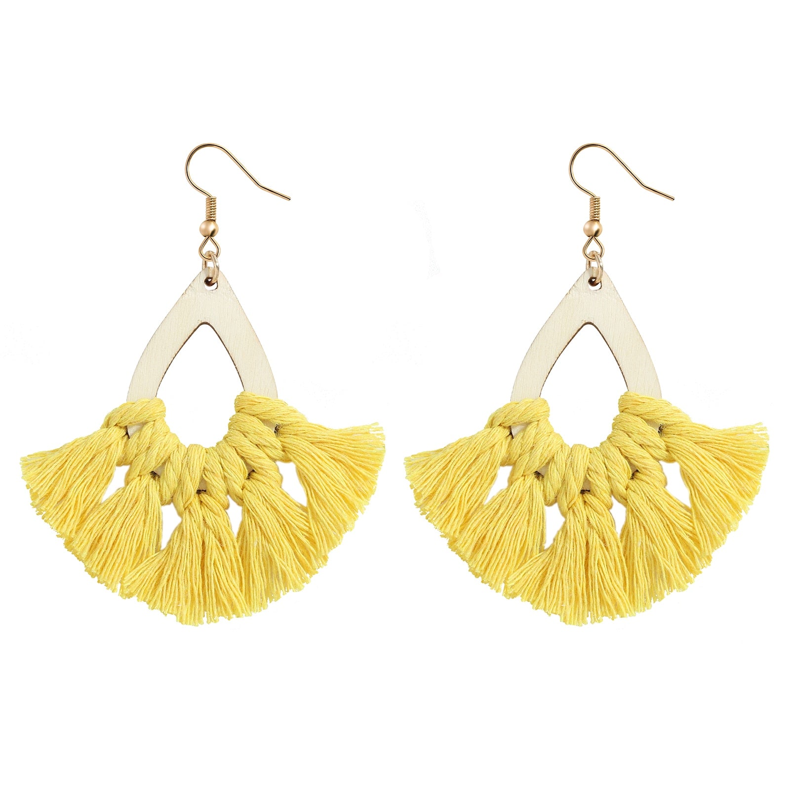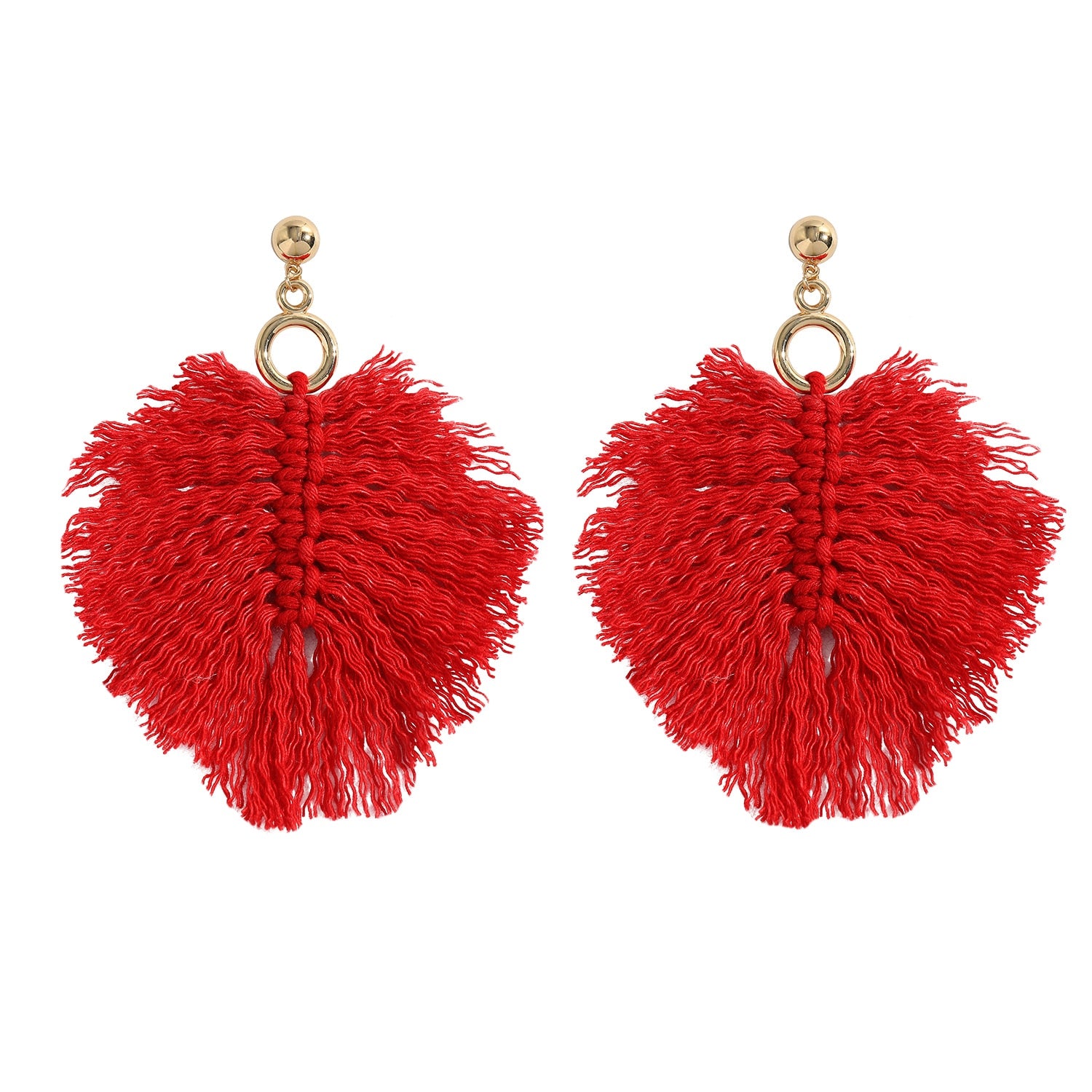 Dvacaman Boho Ethnic Colorful Tassel Macrame Earrings Handmade Cotton Thread Fringed Knotted Pendant Earrings for Women Jewelry