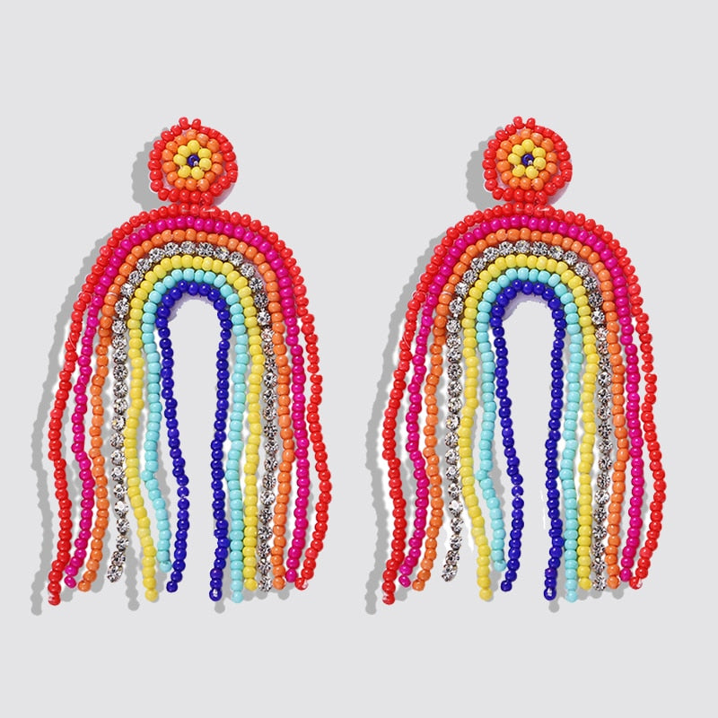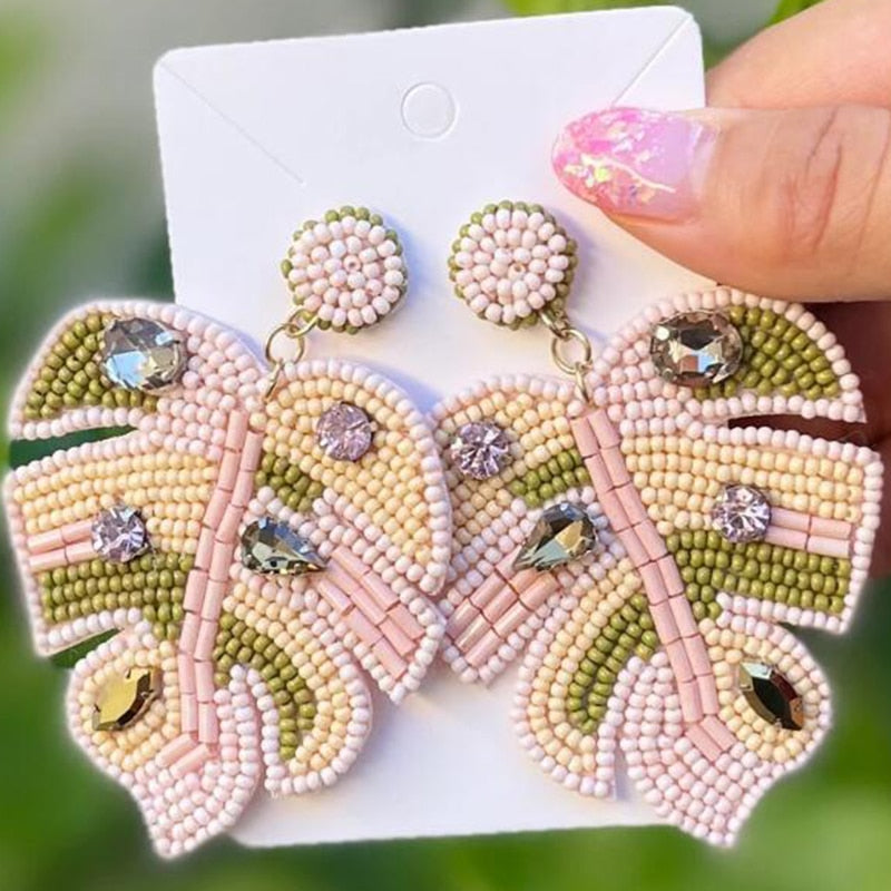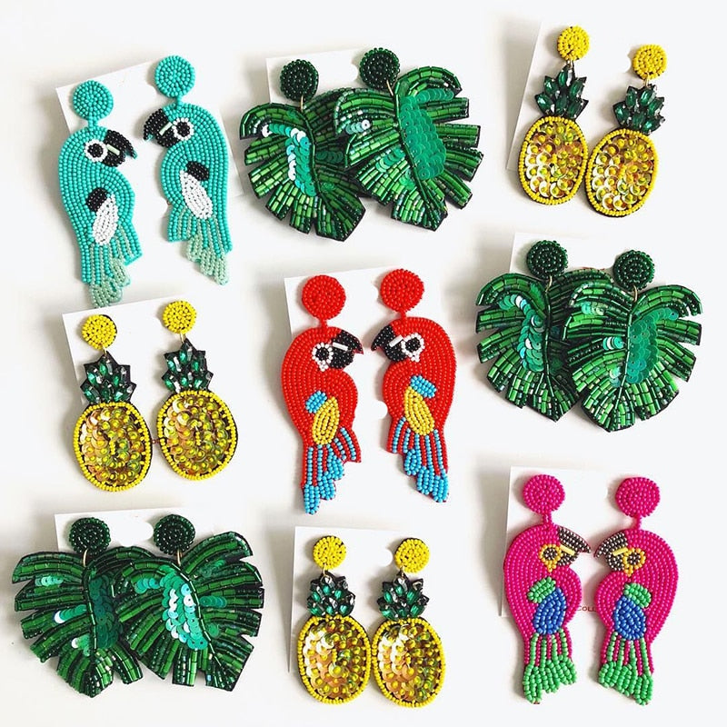 Dvacaman Boho Handmade Beaded Leaf Parrot Pendant Earrings for Women 2022 New Design Wedding Jewelry Korean Drop Dangle Earrings