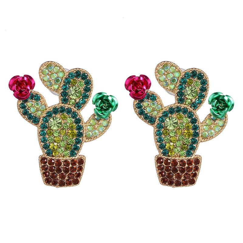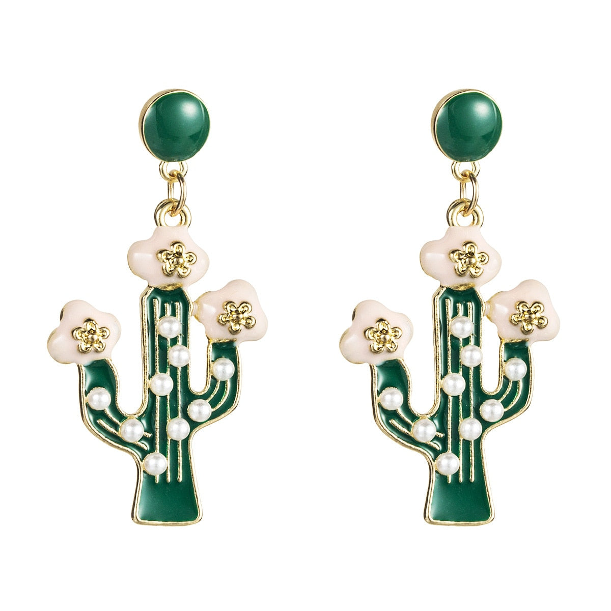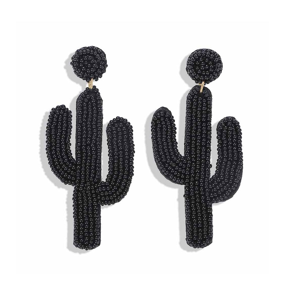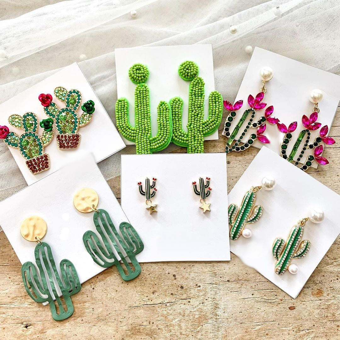 Dvacaman Cute Colorful Rhinestone Cactus Earrings for Women Boho Handmade Green Beaded Cactus Drop Dangle Earrings Jewelry Party