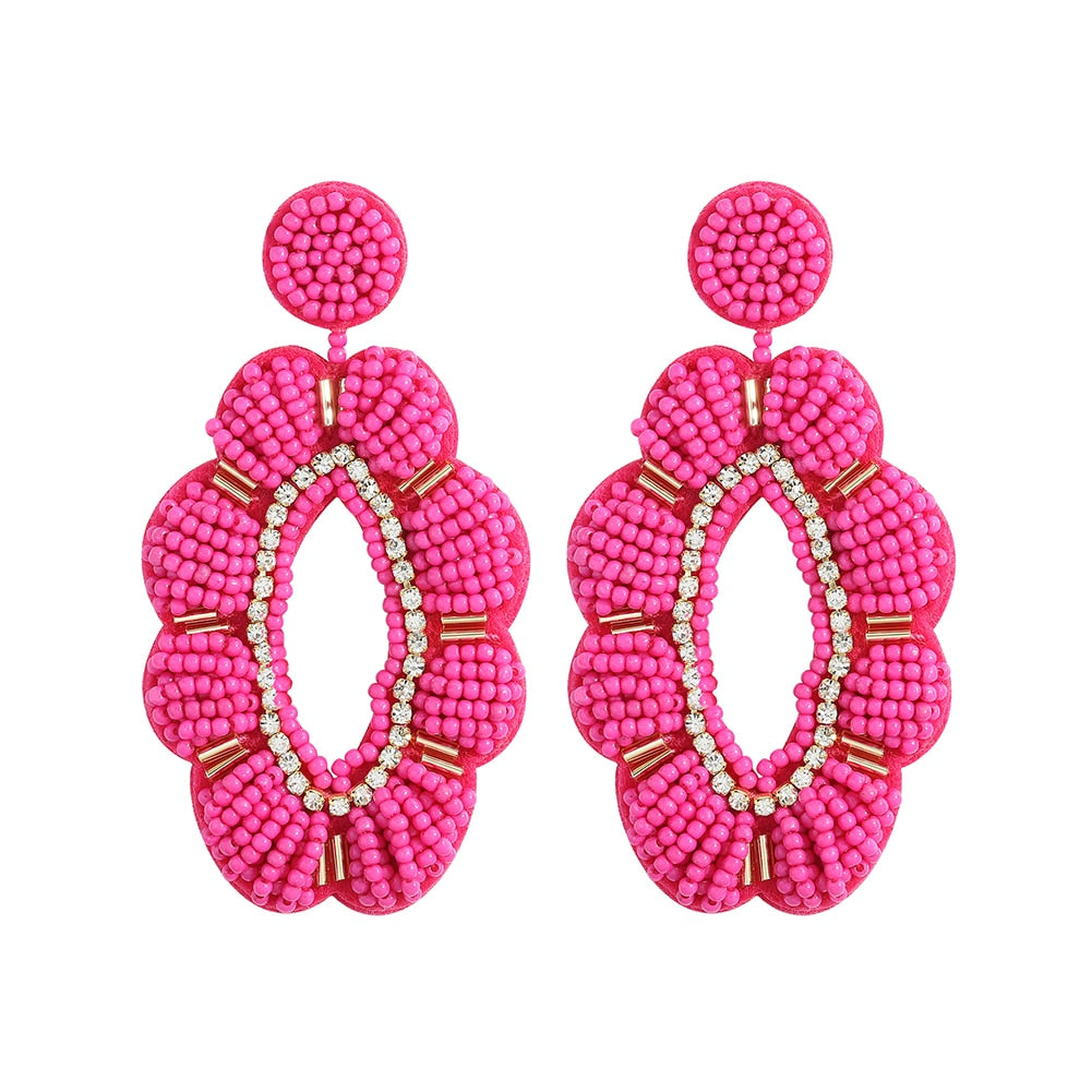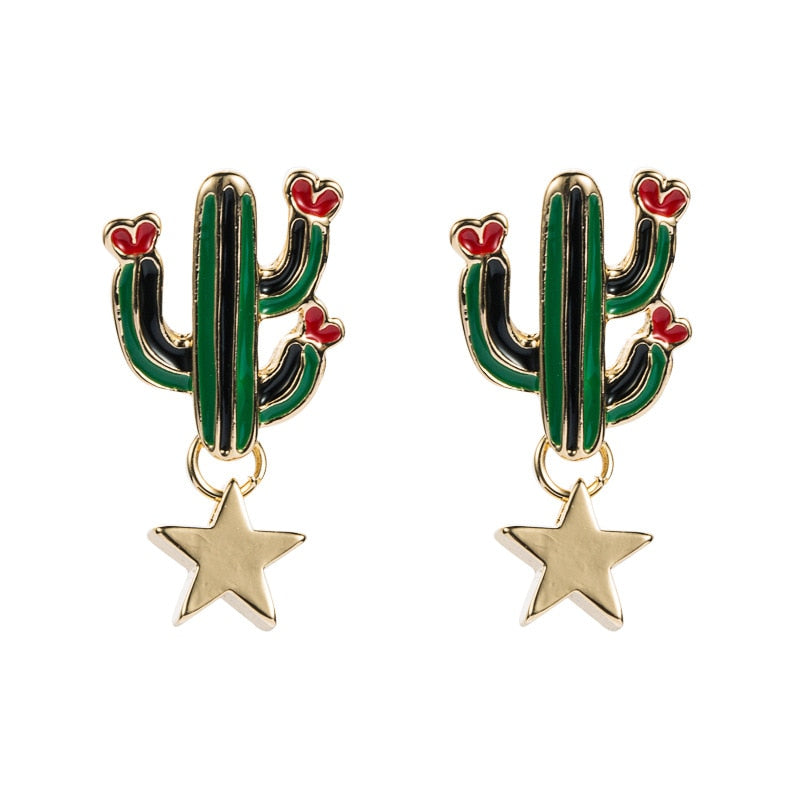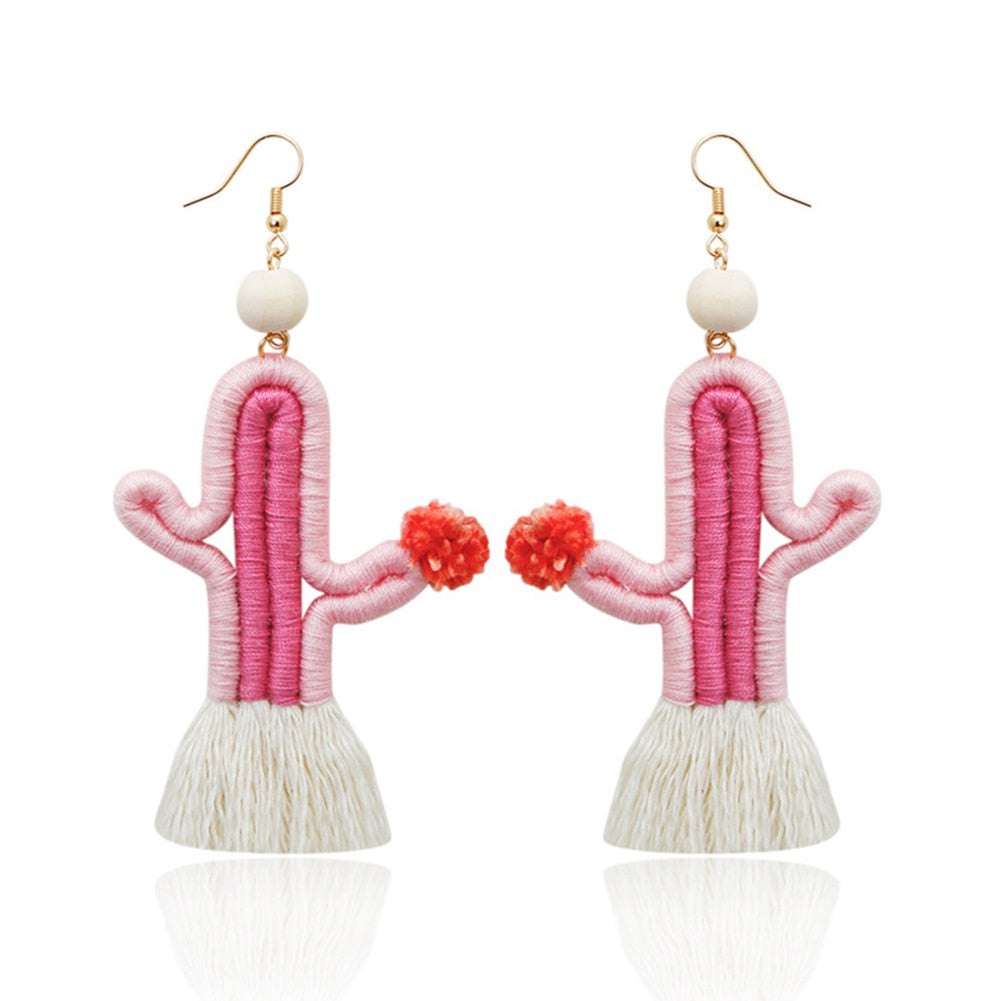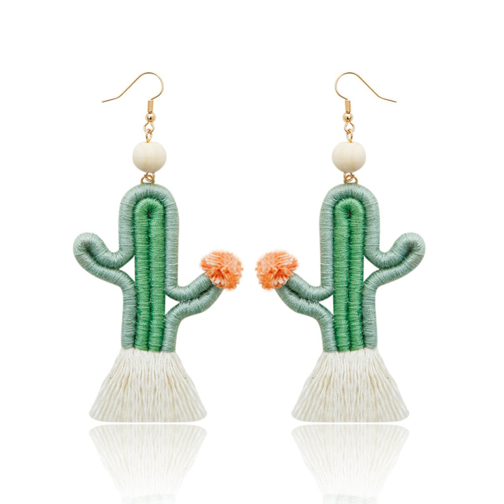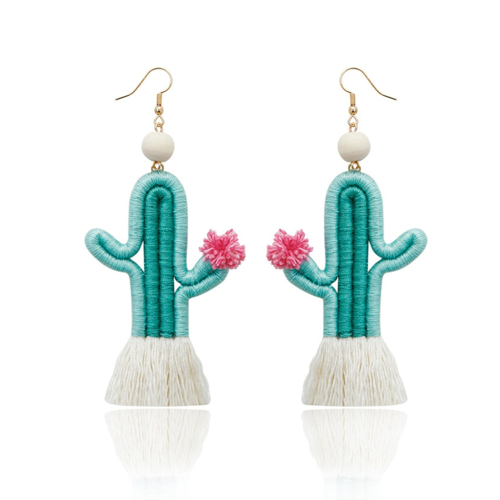 Dvacaman Cute Colorful Rhinestone Cactus Earrings for Women Boho Handmade Green Beaded Cactus Drop Dangle Earrings Jewelry Party