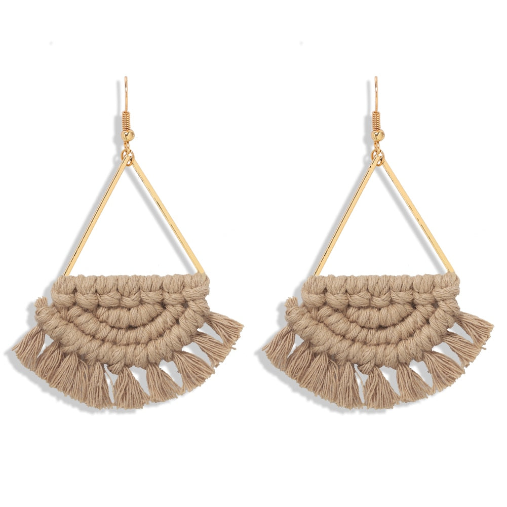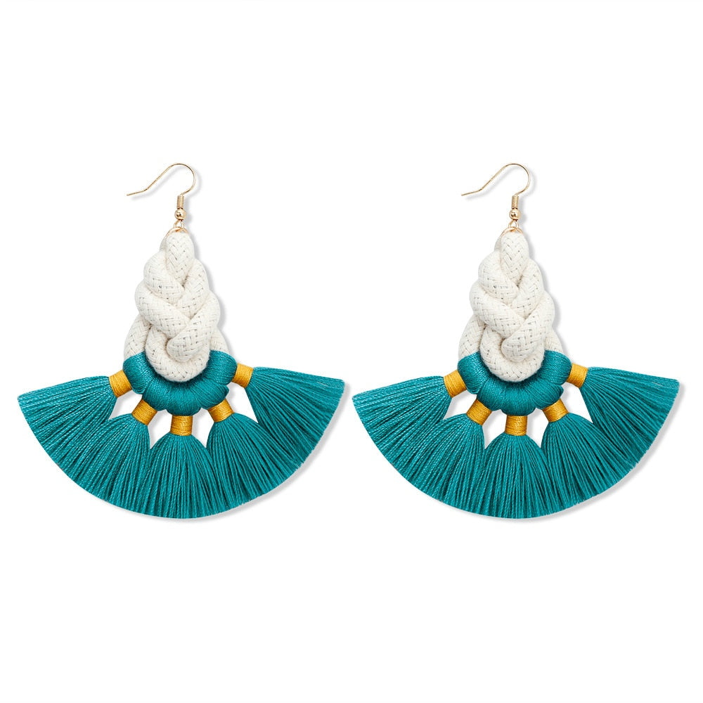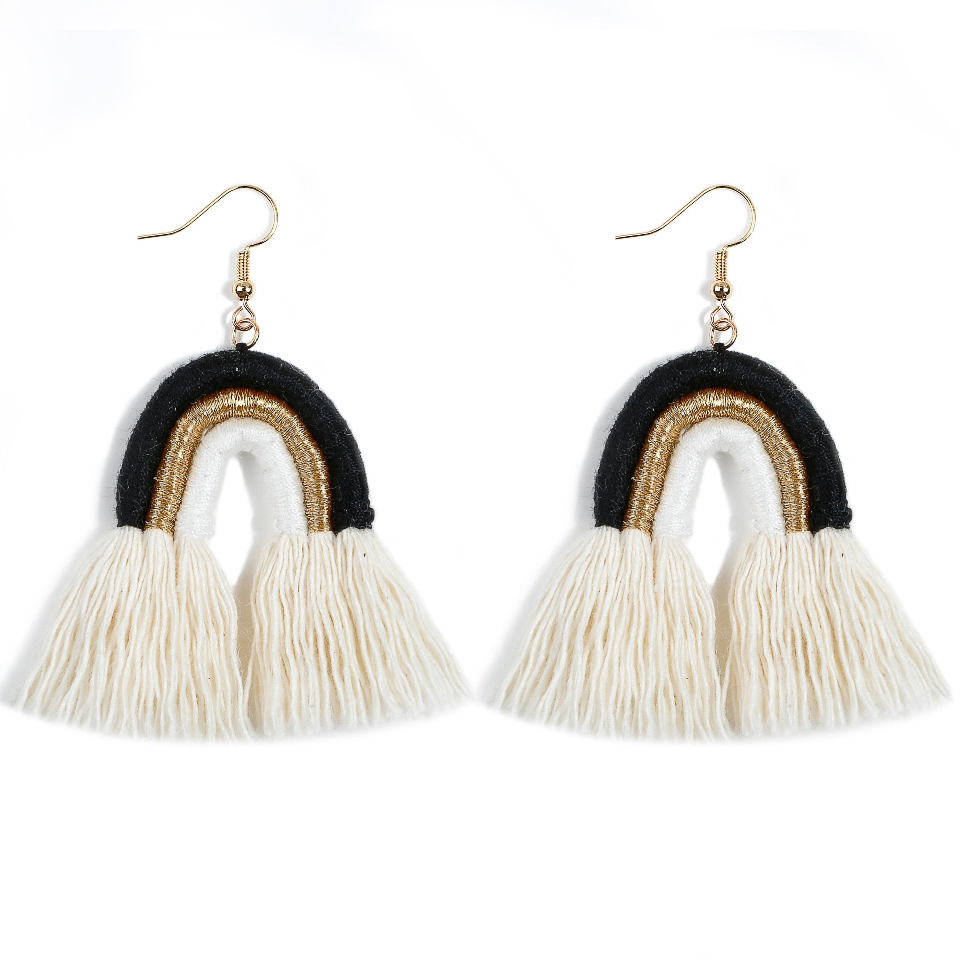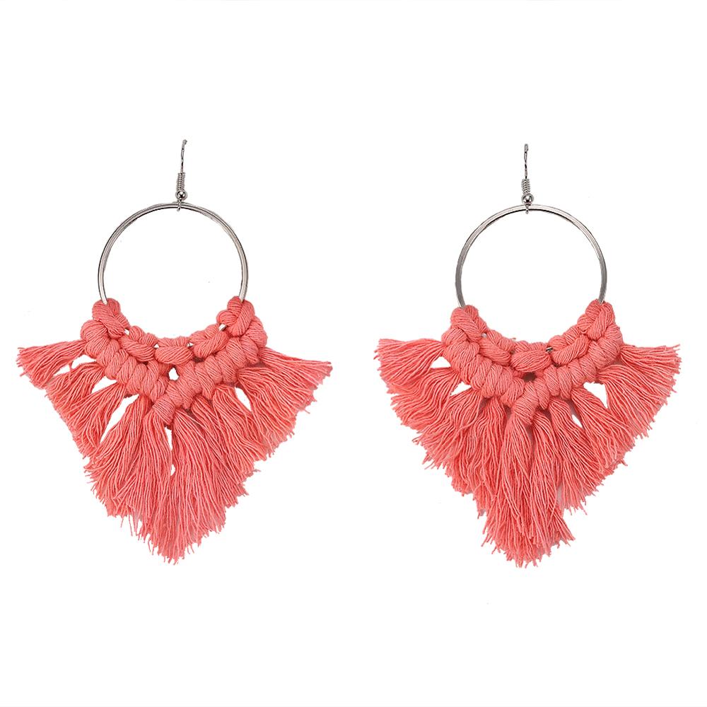Dvacaman Ethnic Handmade Weave Macrame Earrings Cotton Thread Feather Fringe Tassel Earrings Wedding Jewelry Women Accessories