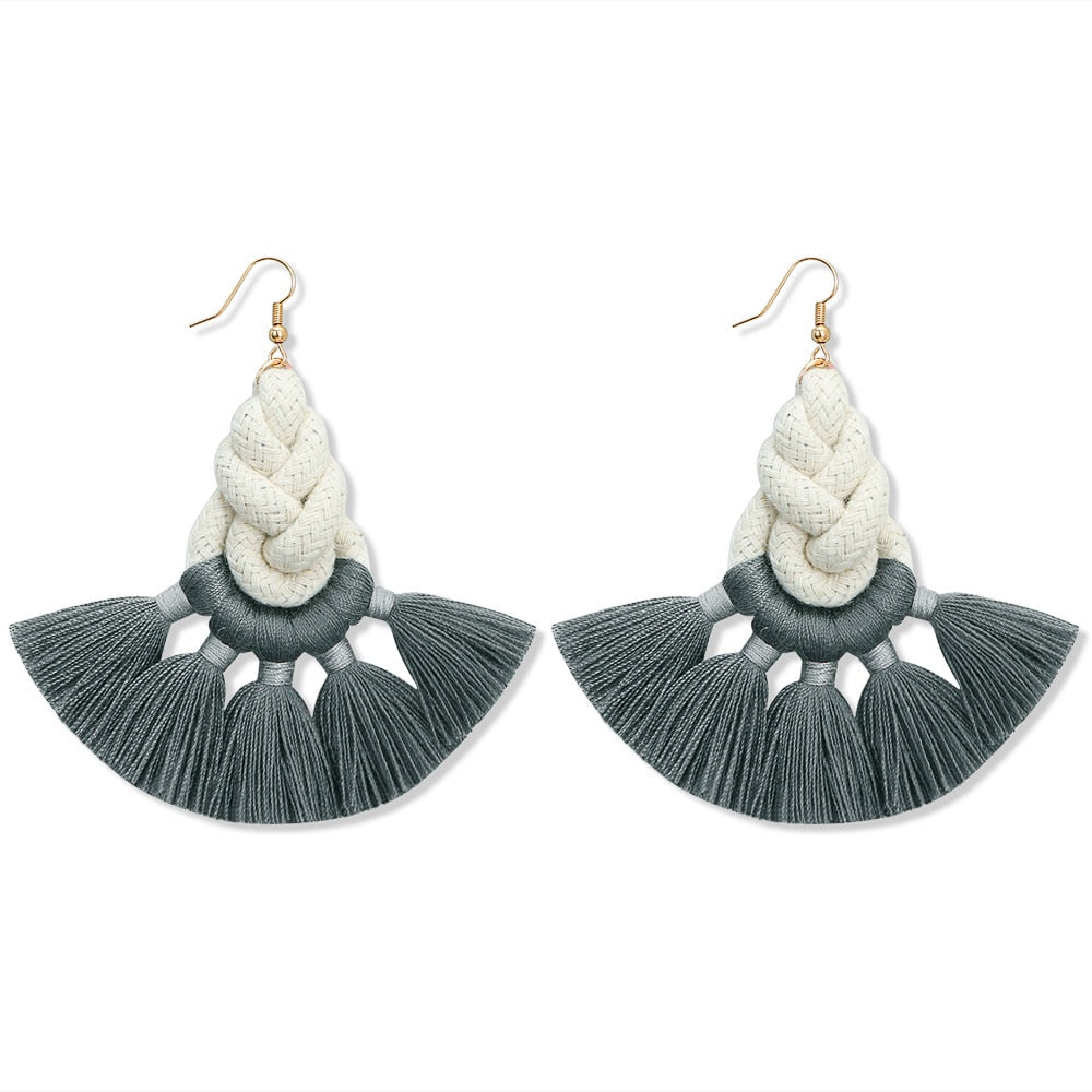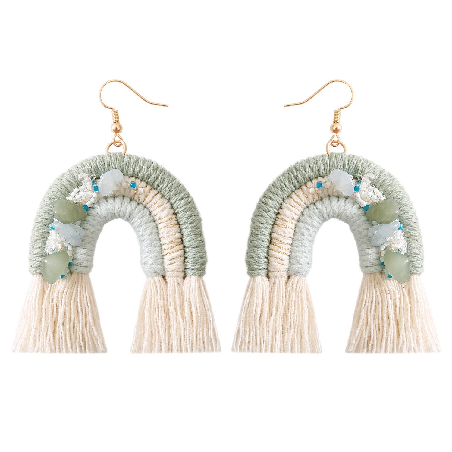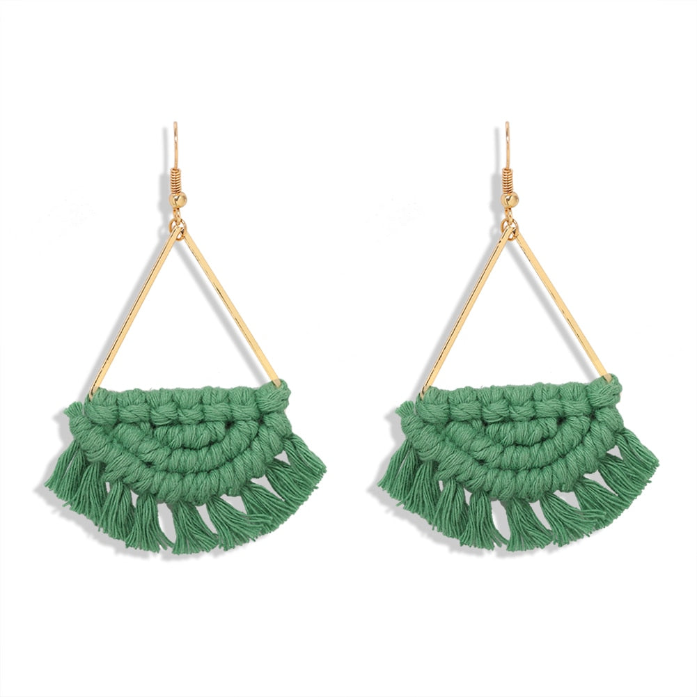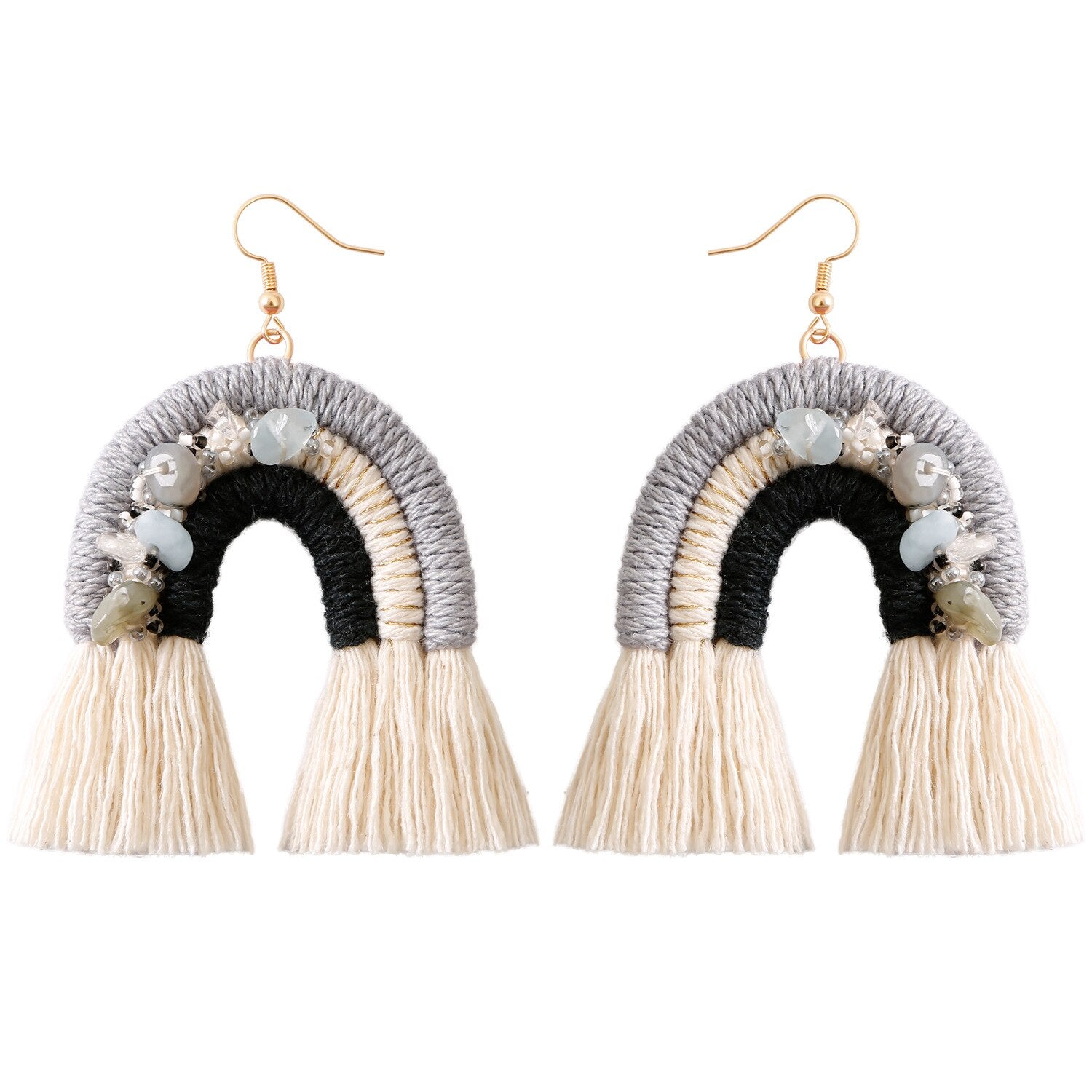 Dvacaman Ethnic Handmade Weave Macrame Earrings Cotton Thread Feather Fringe Tassel Earrings Wedding Jewelry Women Accessories