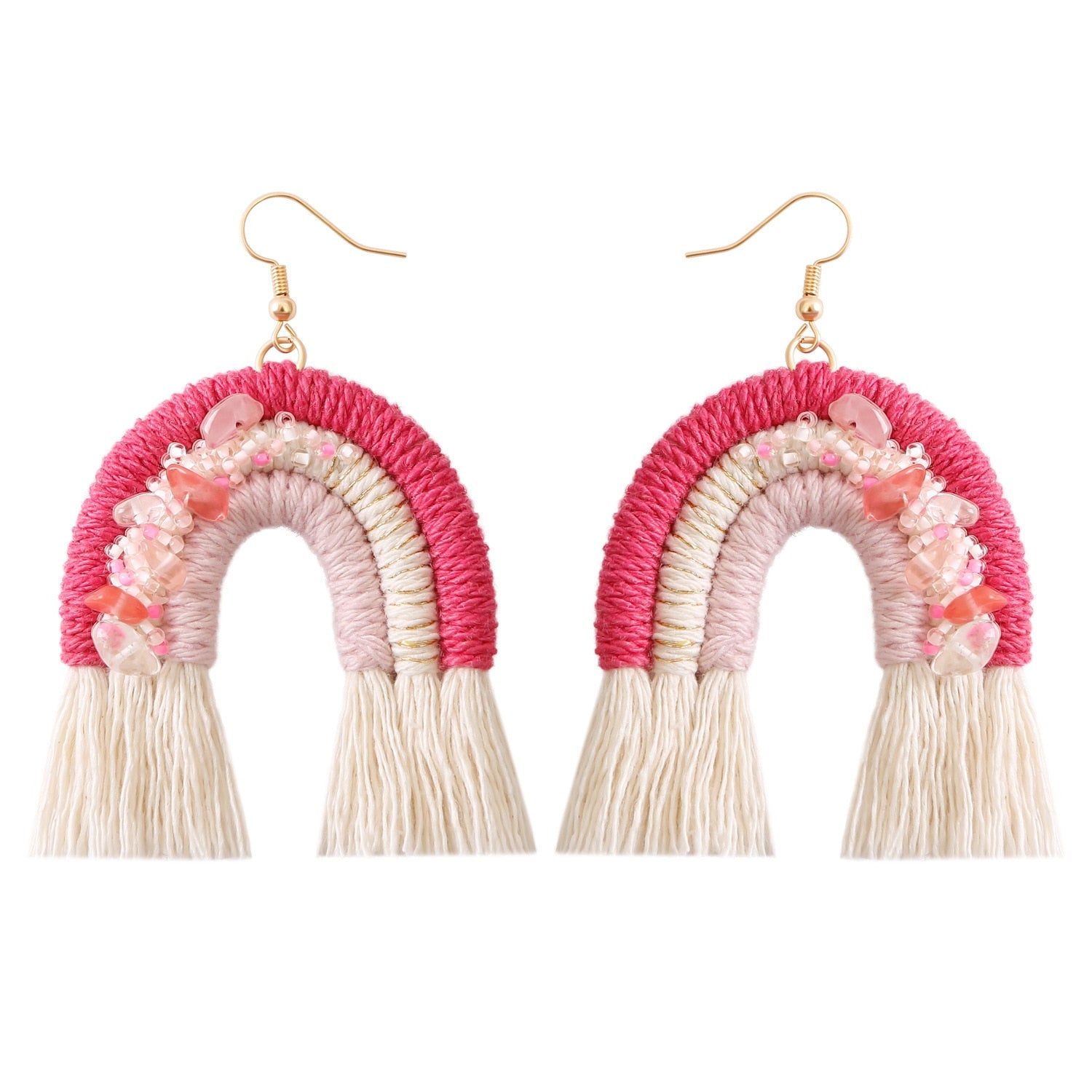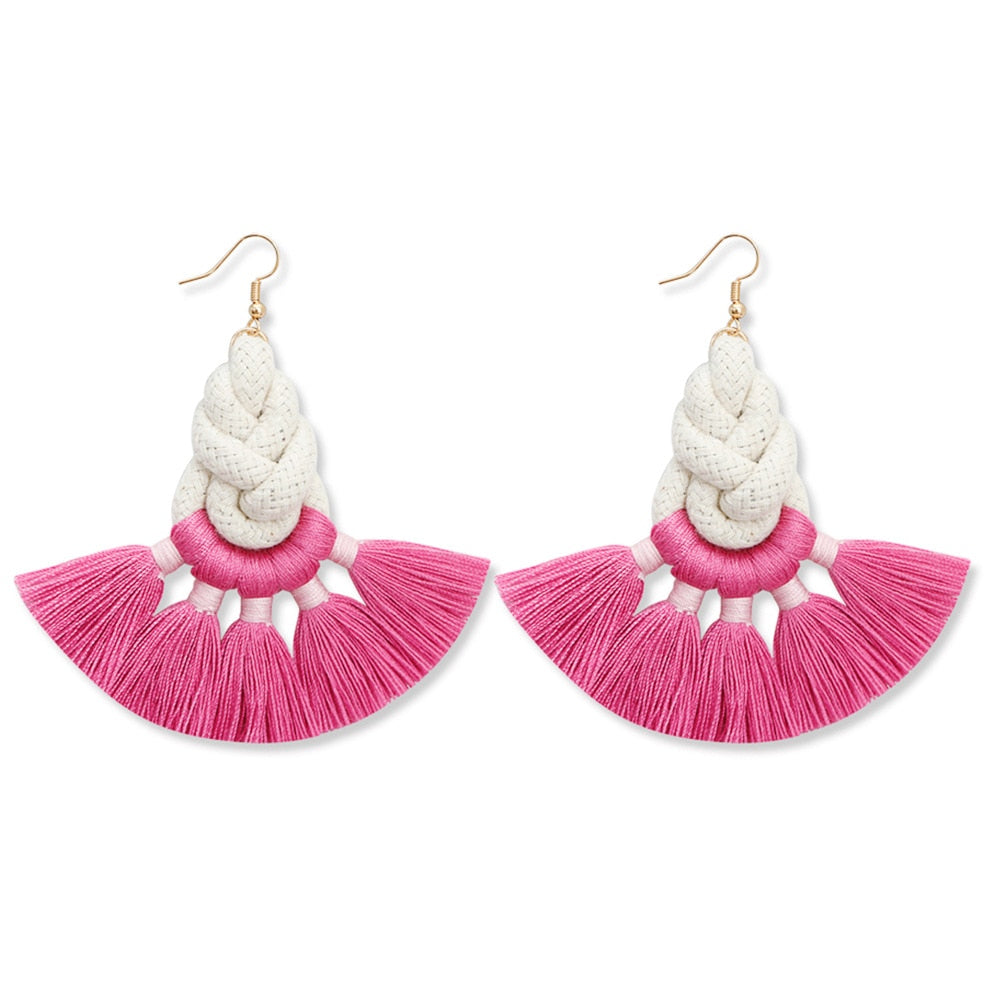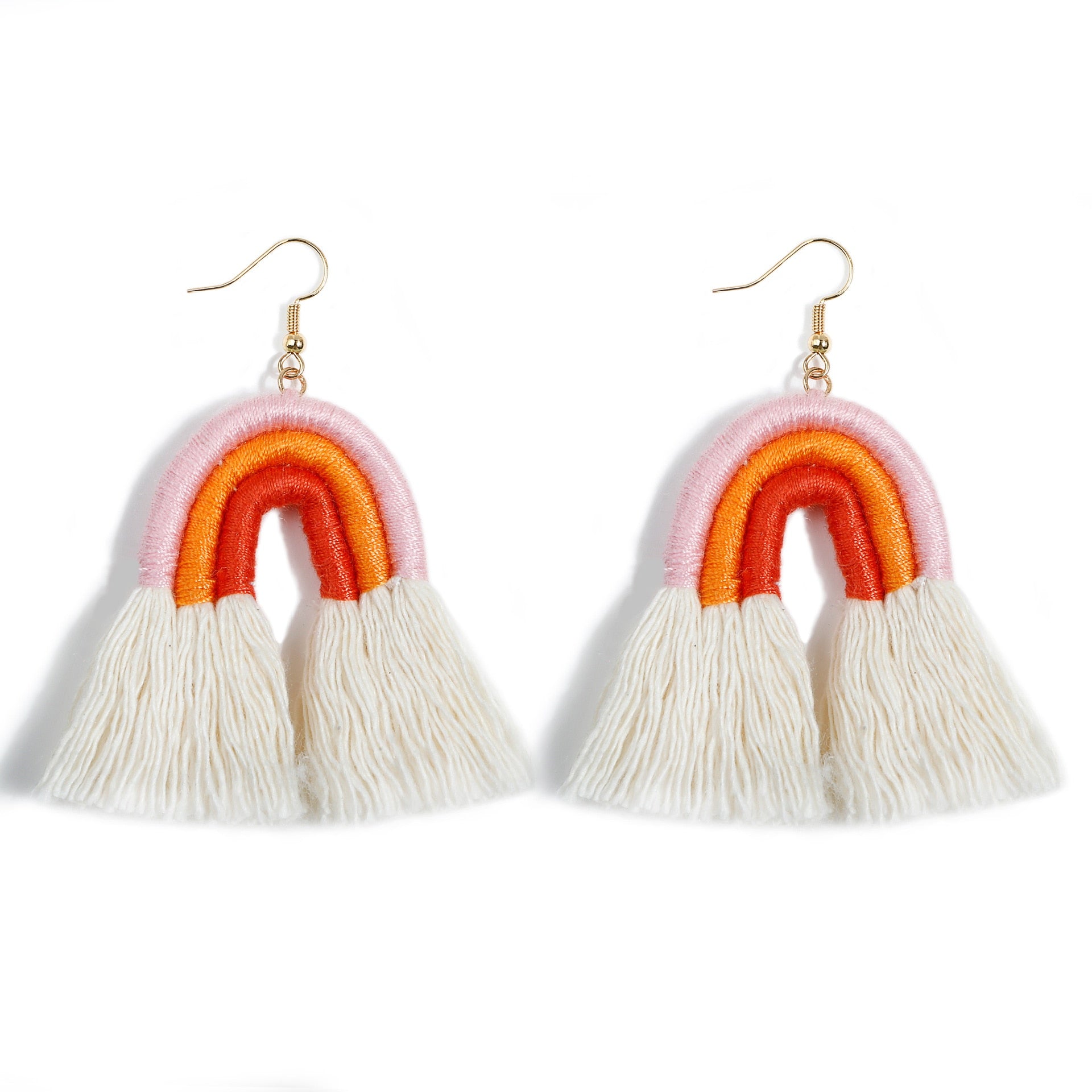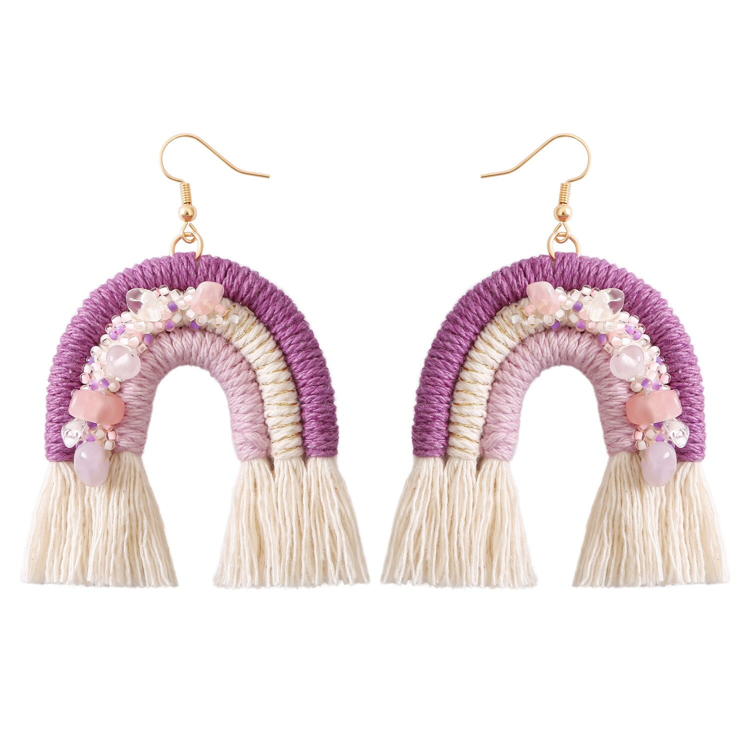 Dvacaman Ethnic Handmade Weave Macrame Earrings Cotton Thread Feather Fringe Tassel Earrings Wedding Jewelry Women Accessories