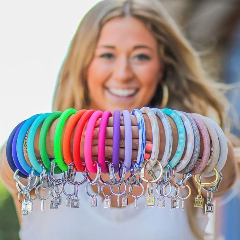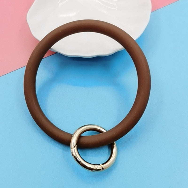 Dvacaman Hot Sale Big O Shaped Silicone Loop Wrist Key Ring Keychain with Gold O Clasp Round Key Wrist Strap Accessory Wholesale
