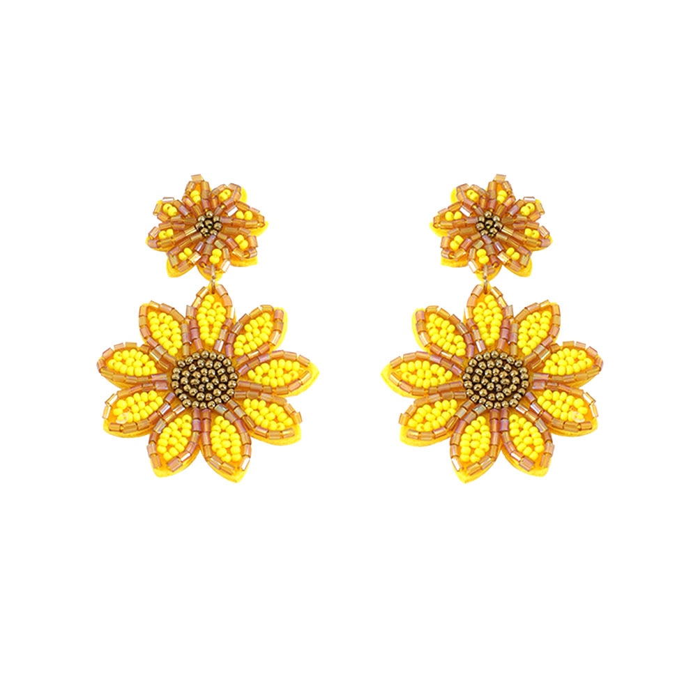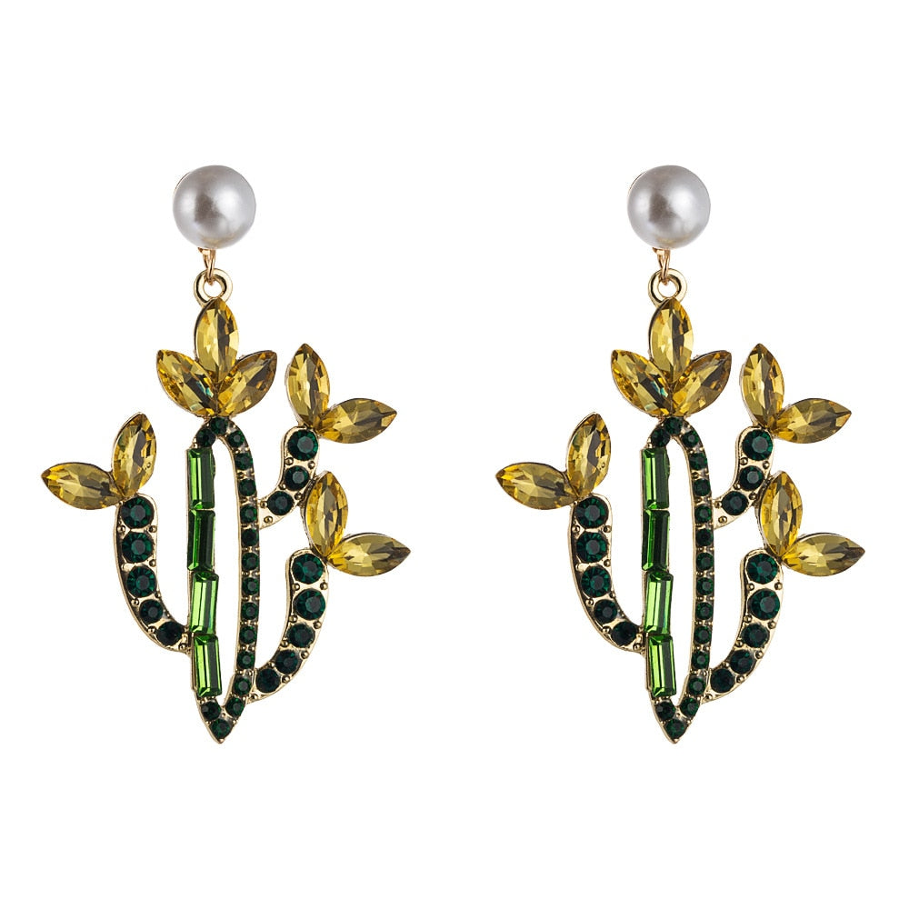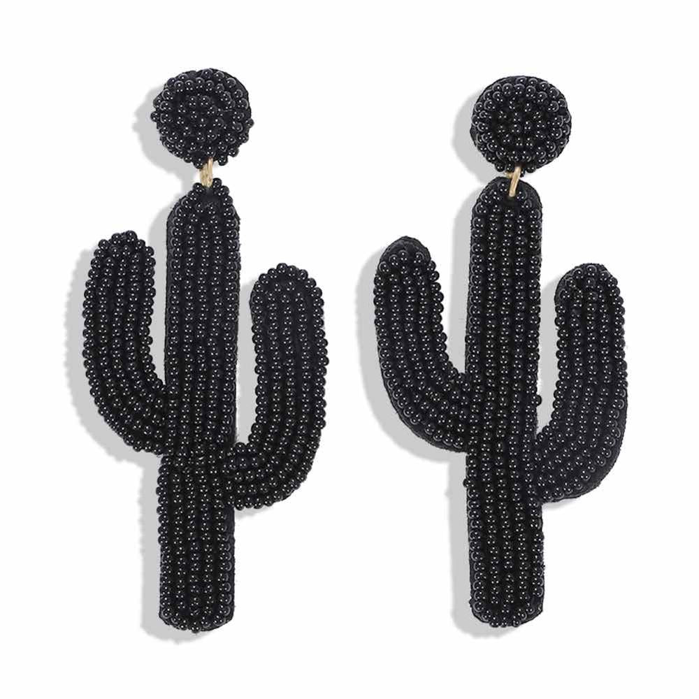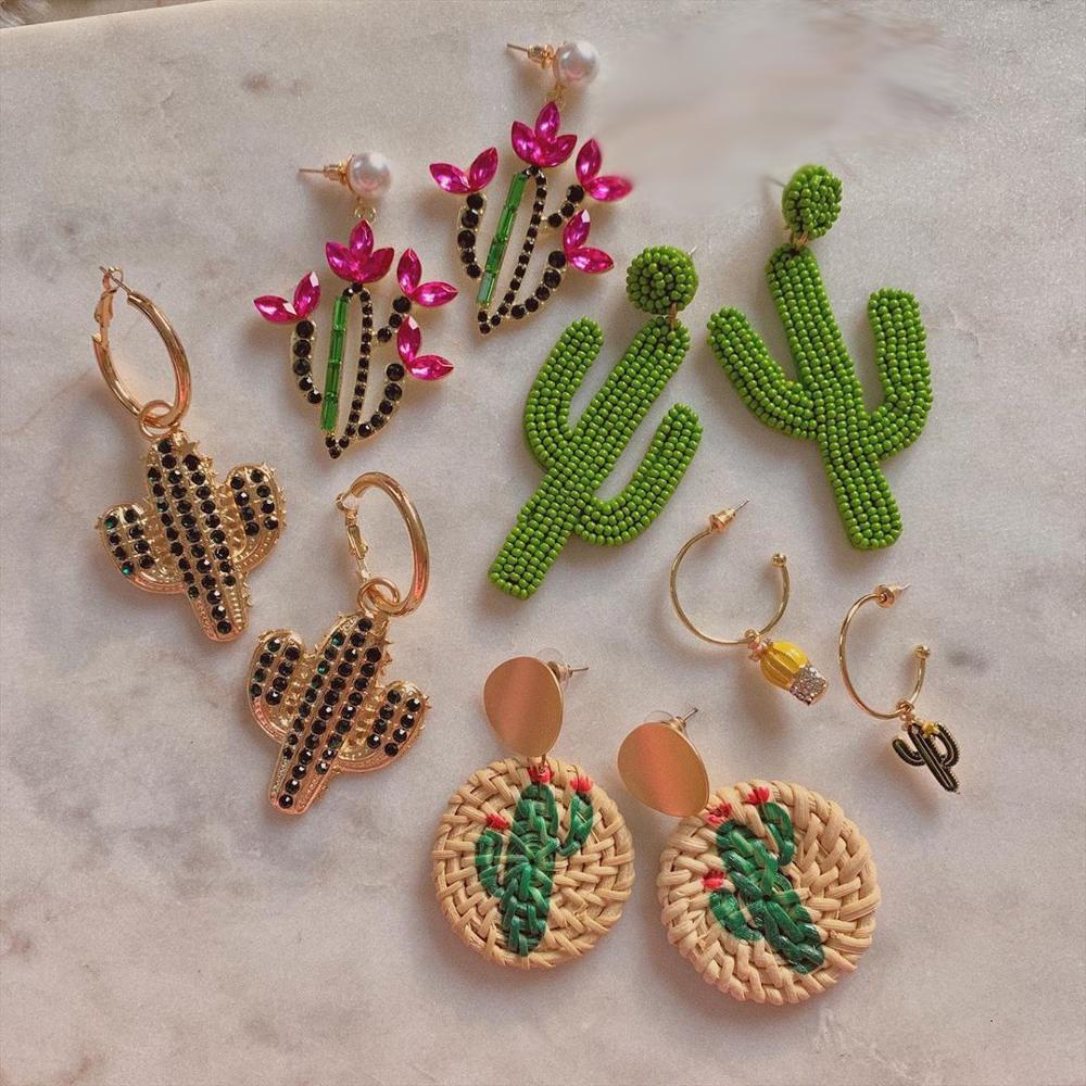 Dvacaman INS Fashion Green Color Beaded Cactus Drop Earrings for Women Boho Weave Rattan Cactus Round Earrings Statement Jewelry