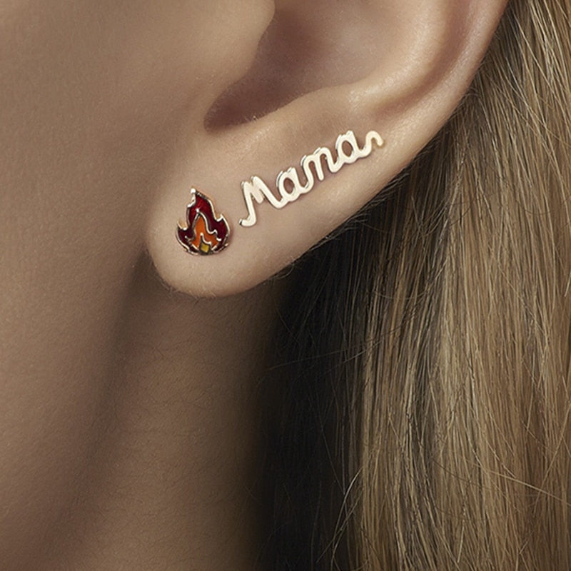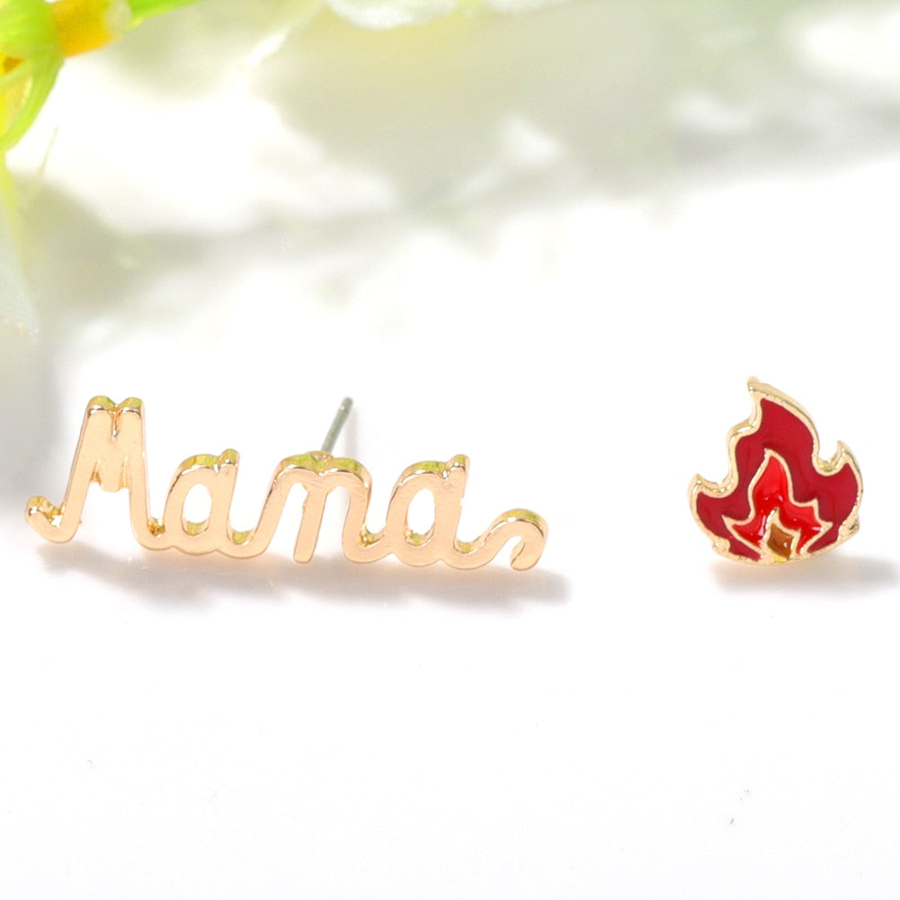 Dvacaman New Gold Color Metal Mama Stud Earrings for Women Fashion Asymmetry Statement Earrings Mother Gifts Jewelry Accessories