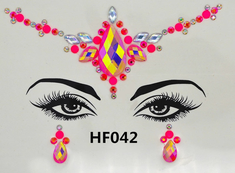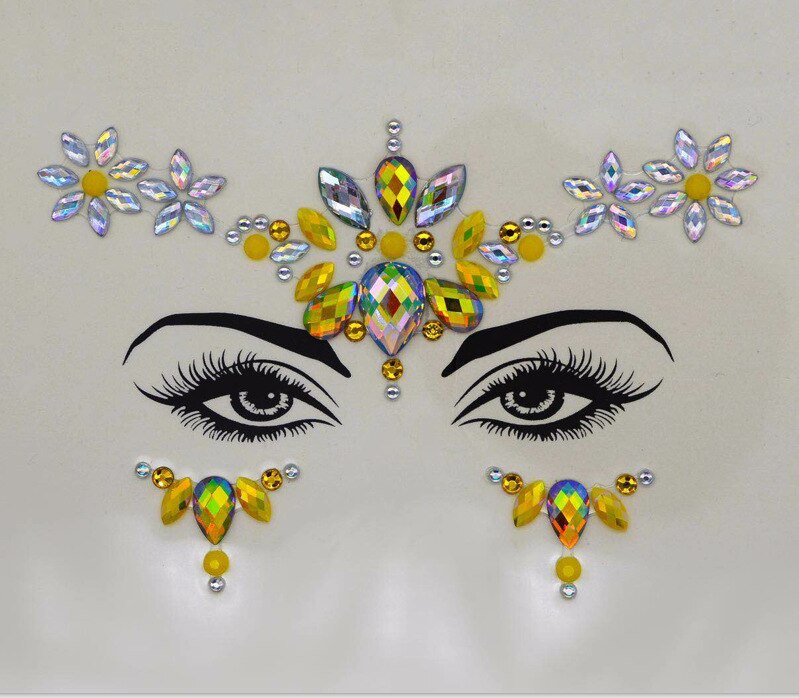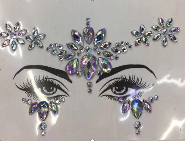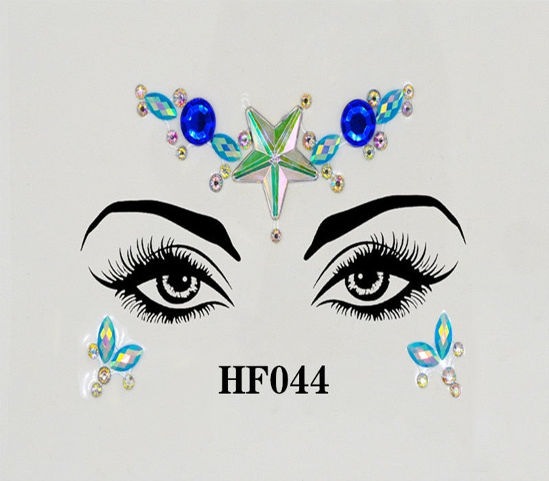 Face Adhesive Jewelry Gems Temporary Tattoo Face Jewelry Festival Party Body Art Gems Rhinestone Flash Tattoos Stickers Make Up