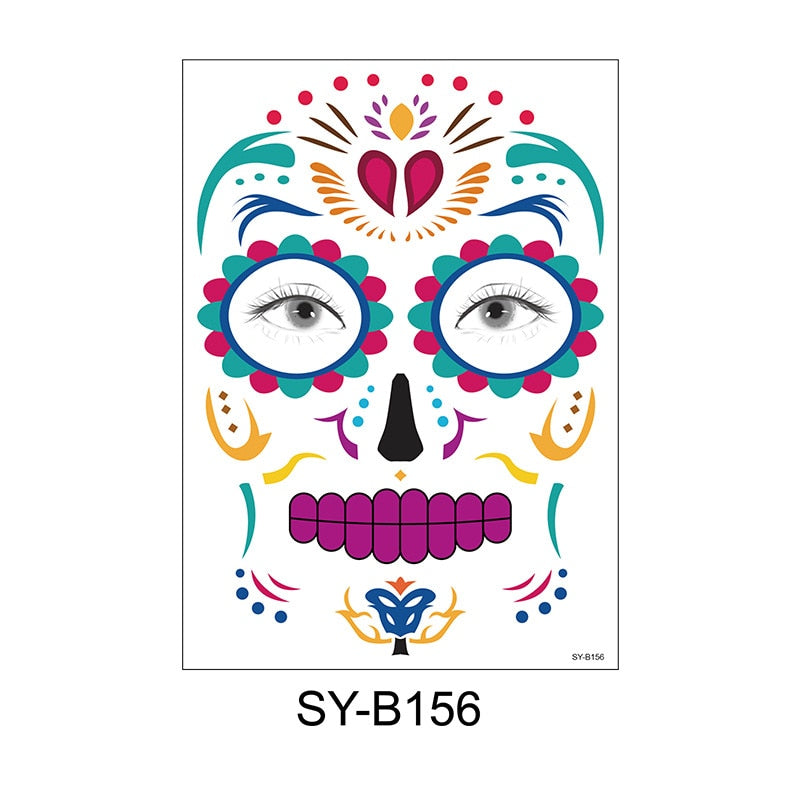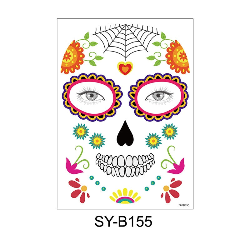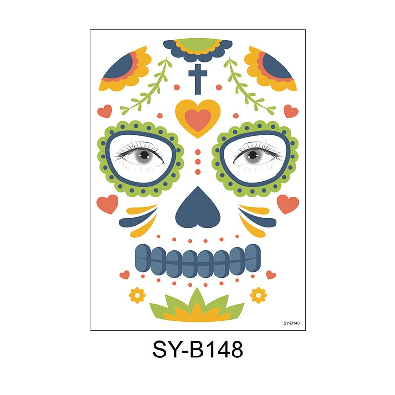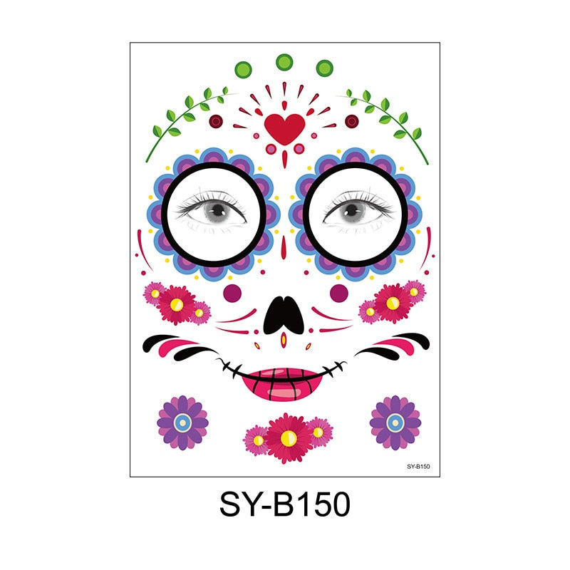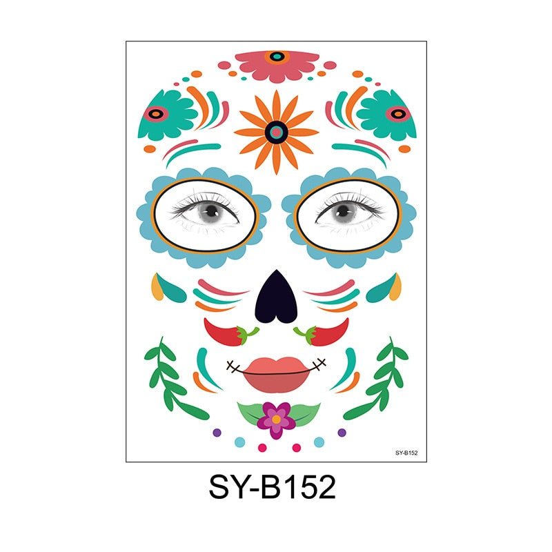 Facial Makeup Sticker Special Waterproof Face Tattoo Day Of The Dead Skull Face Dress Up Halloween Temporary Tattoo Stickers