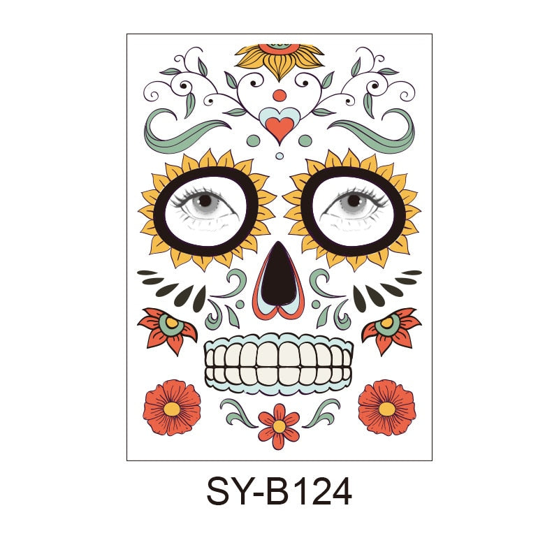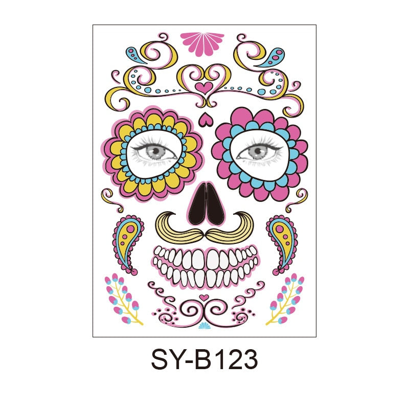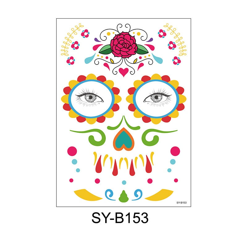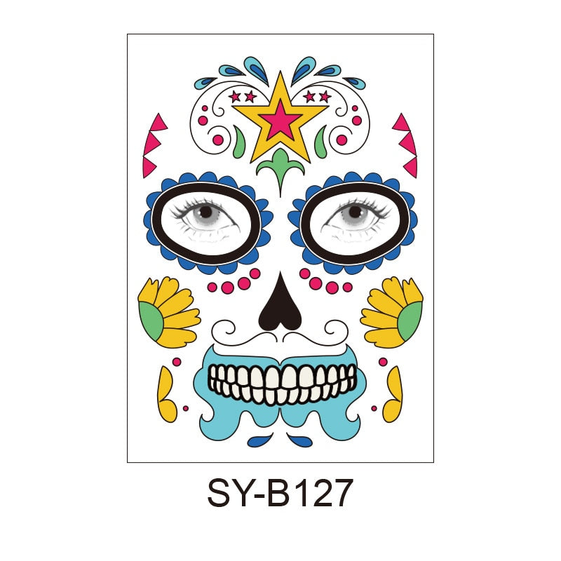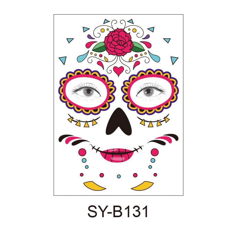 Facial Makeup Sticker Special Waterproof Face Tattoo Day Of The Dead Skull Face Dress Up Halloween Temporary Tattoo Stickers