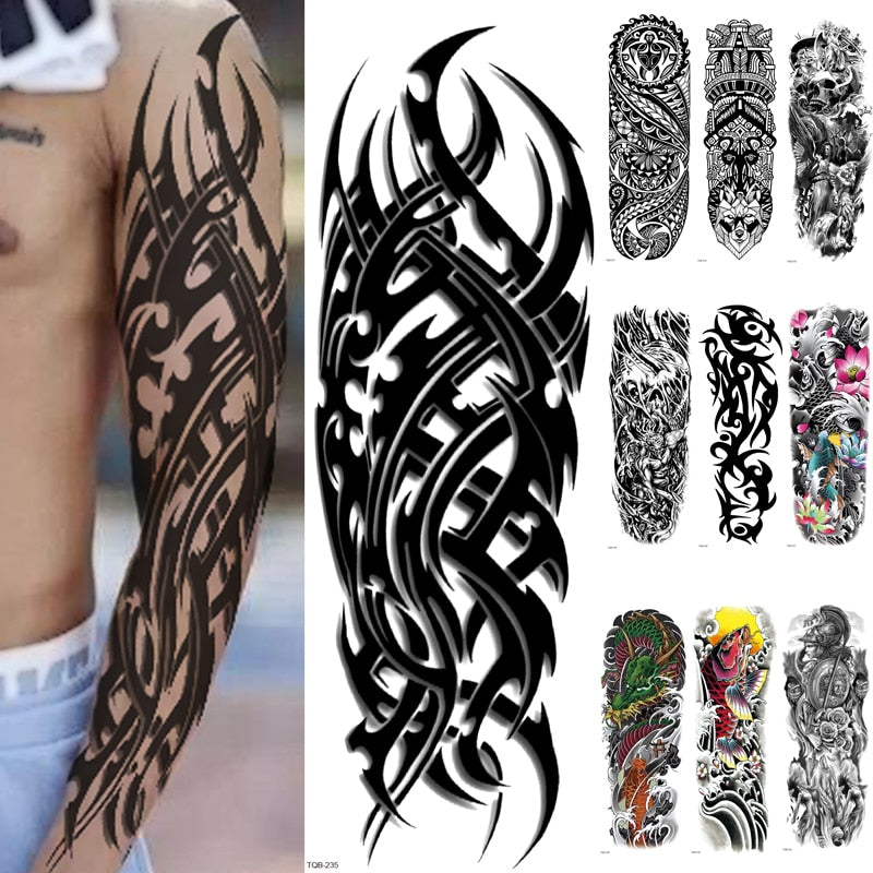 Fake Tattoo Dragon For Men Waterproof Sleeves Angel Tiger Snake Animal Stickers Waterproof Temporary Tattoos Skeleton Hand