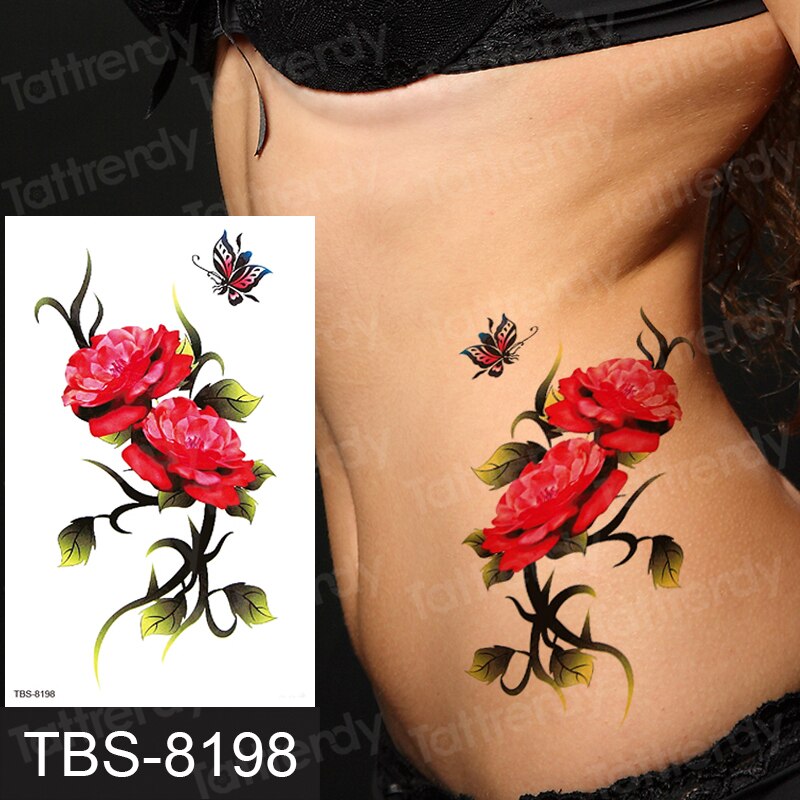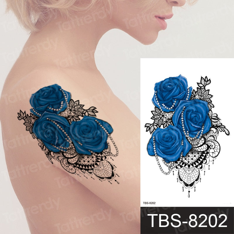 Fashion Colorful Tattoo Waterproof Stickers Beautiful Flowers Tattoo Women New Waterproof Temporary Black Tattoo Sticker Body